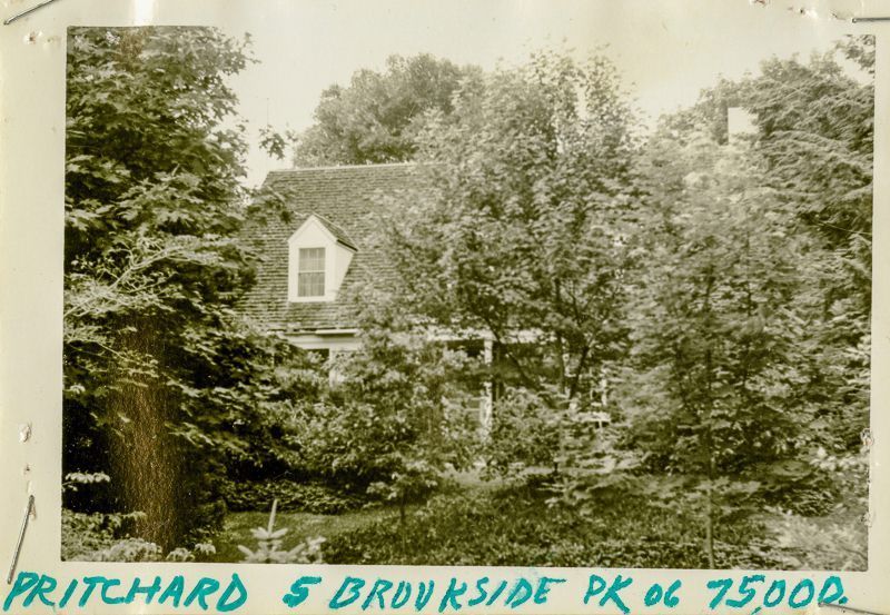 Cape Cod-style house built in 1928 with a small dormer and partially obscured by trees viewed from its lawn.