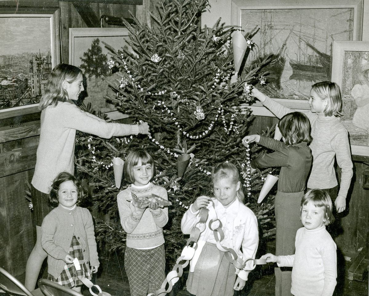 A group of children decorating a Christmas tree in Bush-Holley House.Collection