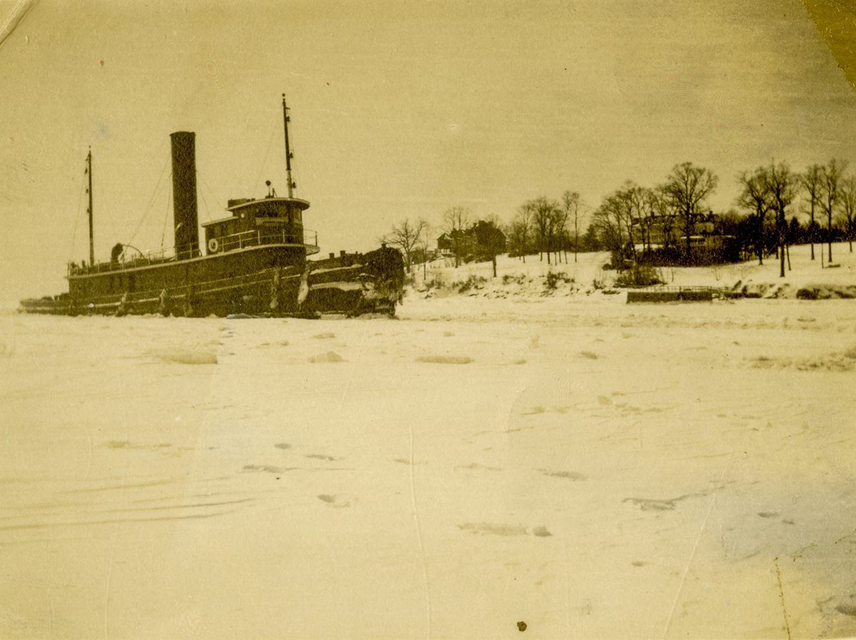 Tugboat breaking up ice.