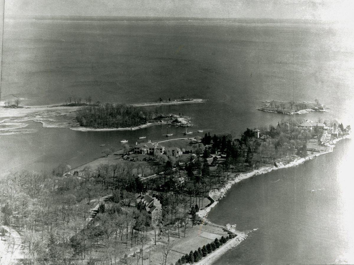 Aerial view looking east of the lower section of Indian Harbor Point with Tweed Island and Mead's Point visible.Collection