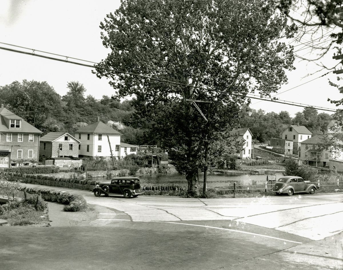 Looking south-east on Valley Road towards the intersection with Palmer Hill Road and the bridge over the Mianus River.Collection