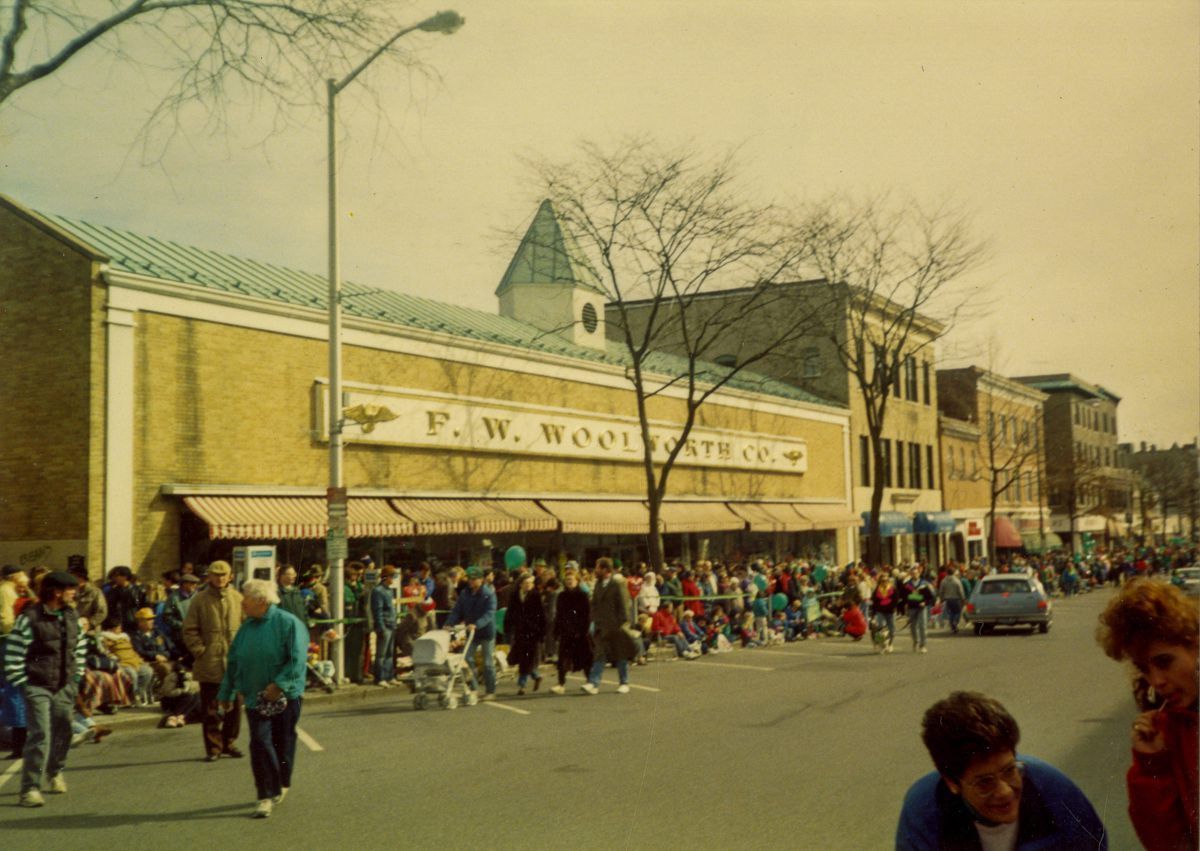 Images of a Saint Patrick's Day parade on Greenwich Avenue.