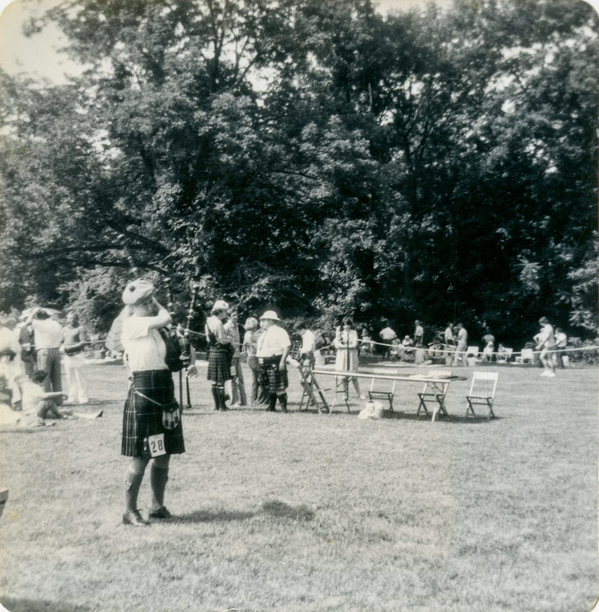 Images of people attending a Scottish Games in Stamford on the Colhoun Estate.