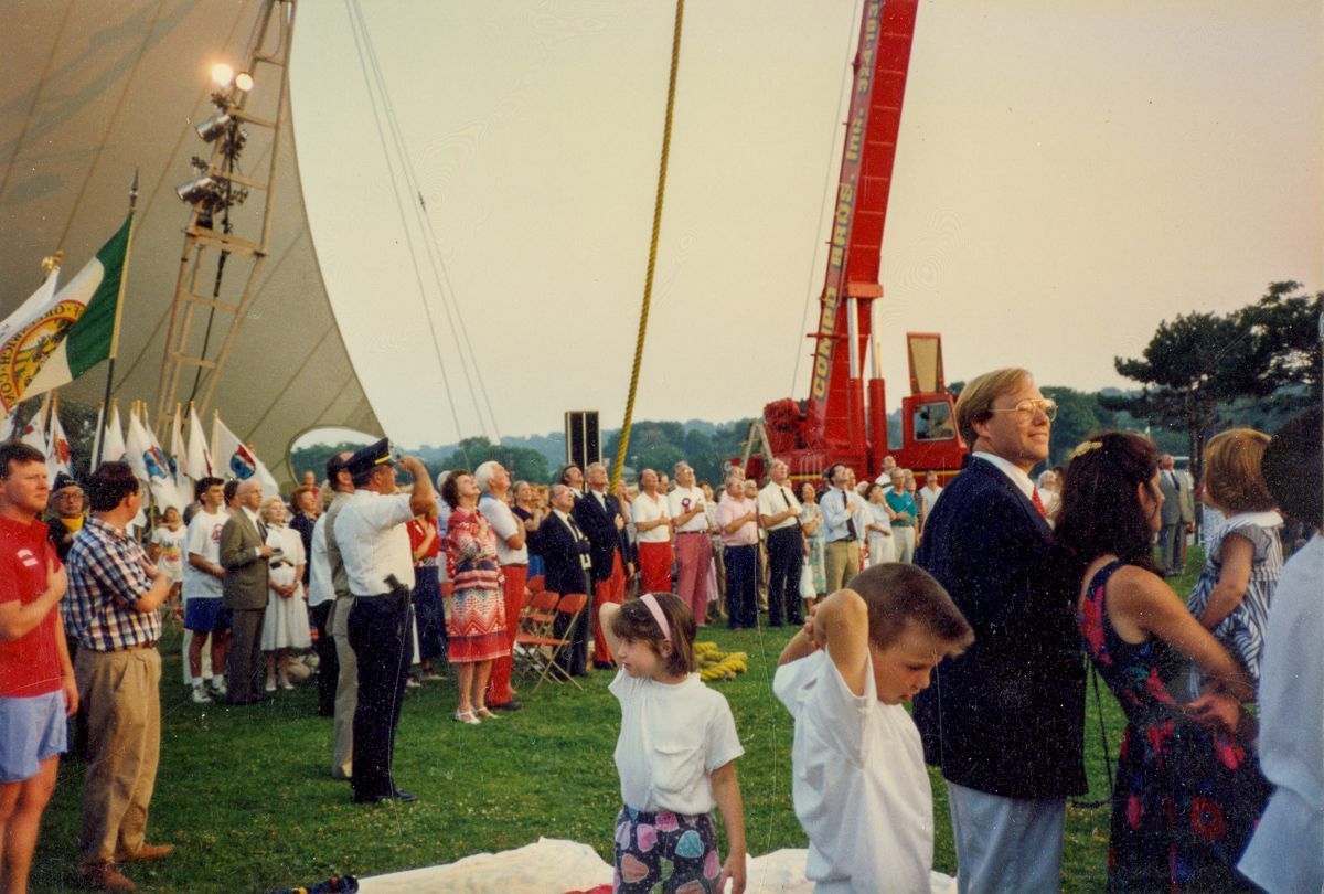 People at the flag raising and dedication ceremony during the celebrations of the 350th Anniversary of Greenwich's founding.Collection