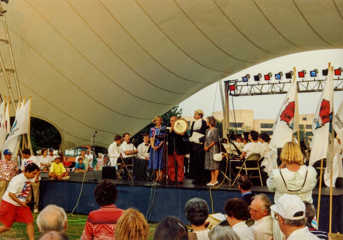 People at the flag raising and dedication ceremony during the celebrations of the 350th Anniversary of Greenwich's founding.Collection
