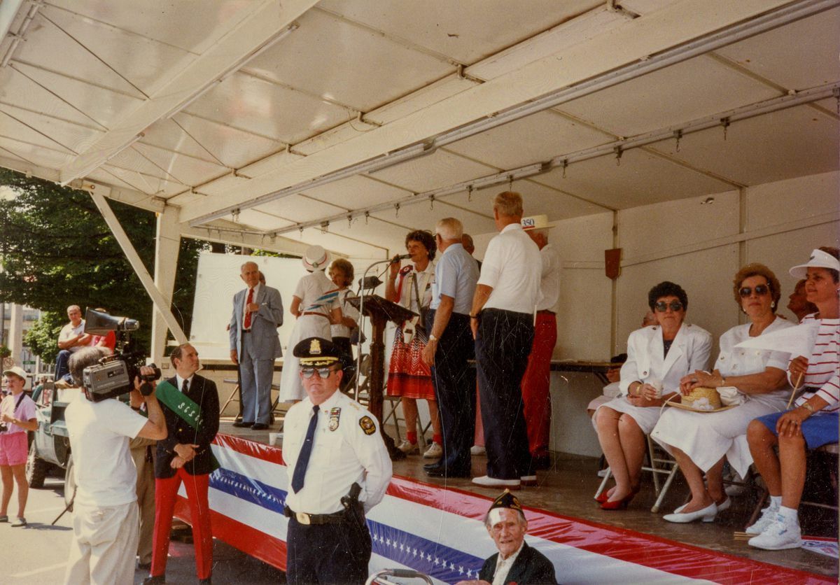 People at the flag raising and dedication ceremony during the celebrations of the 350th Anniversary of Greenwich's founding.Collection