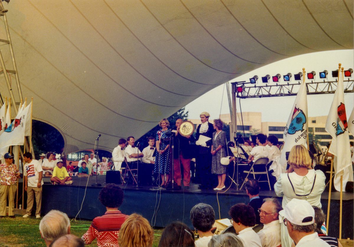 People at the flag raising and dedication ceremony during the celebrations of the 350th Anniversary of Greenwich's founding.Collection