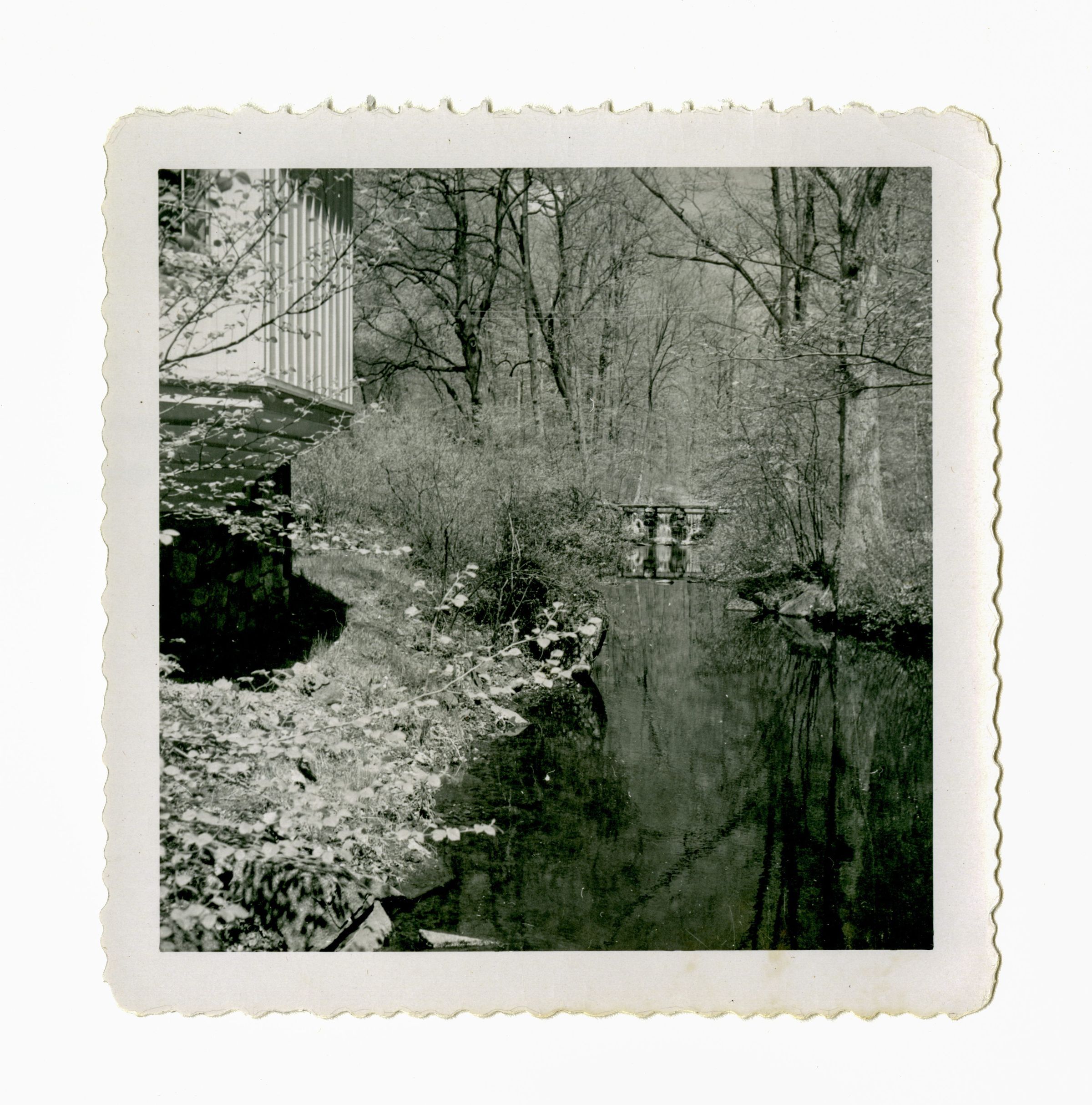 A small stream on the property with part of the guesthouse visible on the left side of the image.Collection