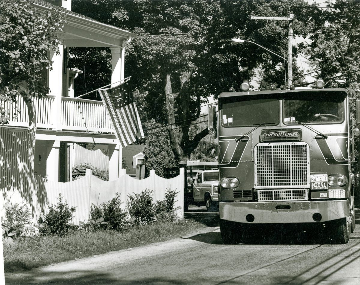 Trucks using Strickland Road and River Road after the Mianus Bridge Collapse made part of Interstate 95 unusable.Collection