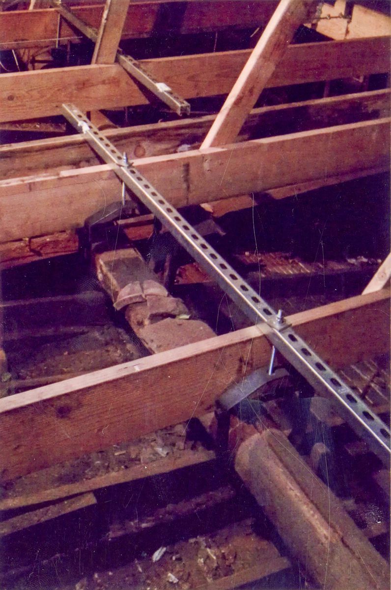 Images of repair work being done on the rafters of Dingletown Community Church.Collection