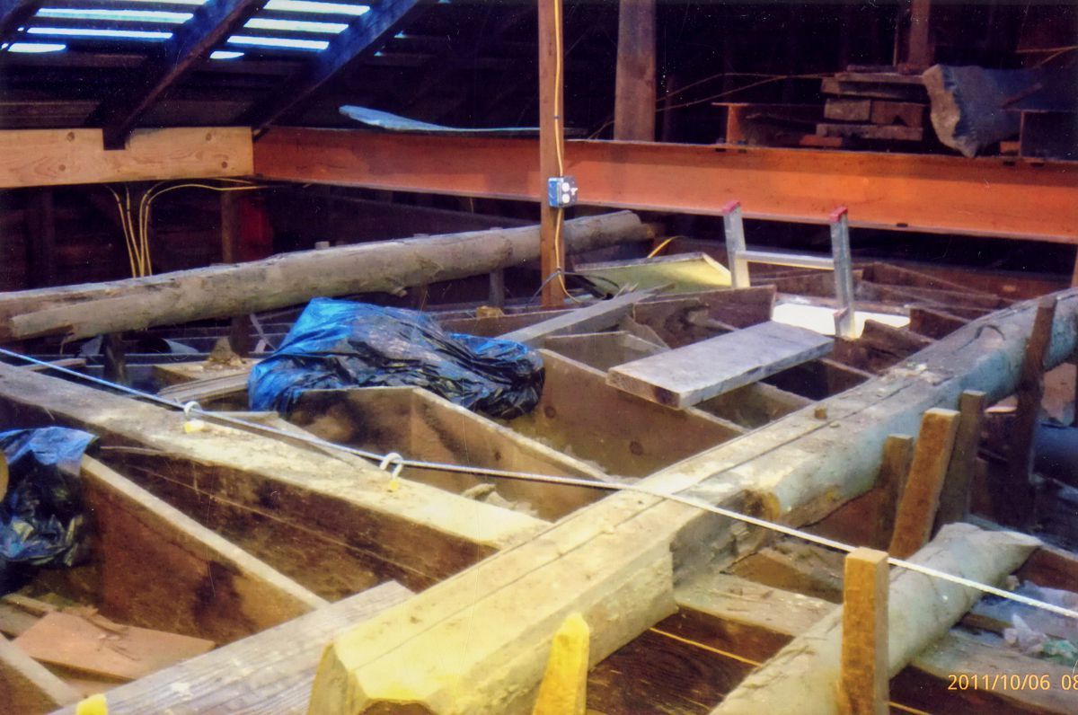 Images of repair work being done on the rafters of Dingletown Community Church.Collection
