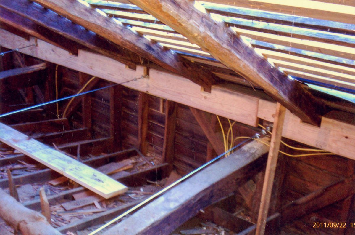 Images of repair work being done on the rafters of Dingletown Community Church.Collection