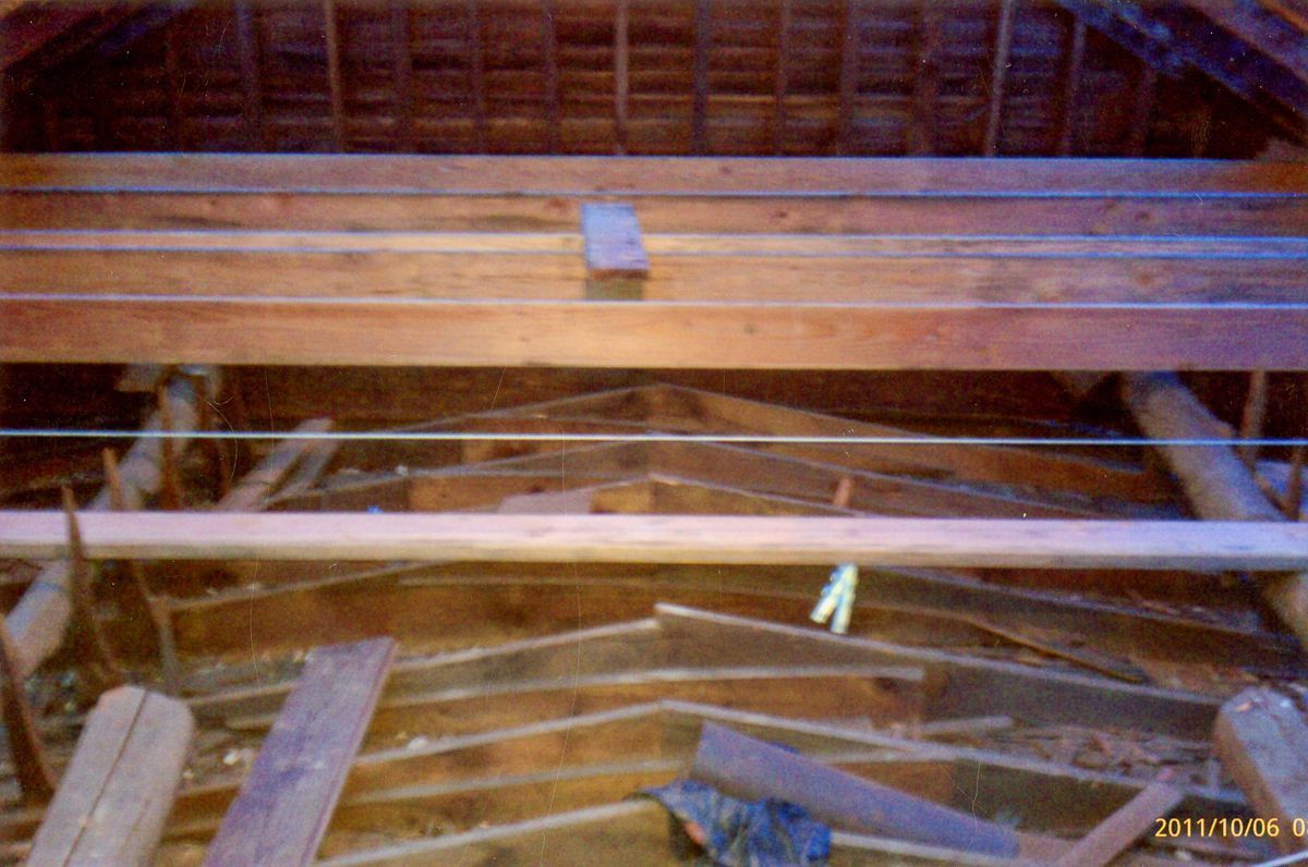 Images of repair work being done on the rafters of Dingletown Community Church.Collection