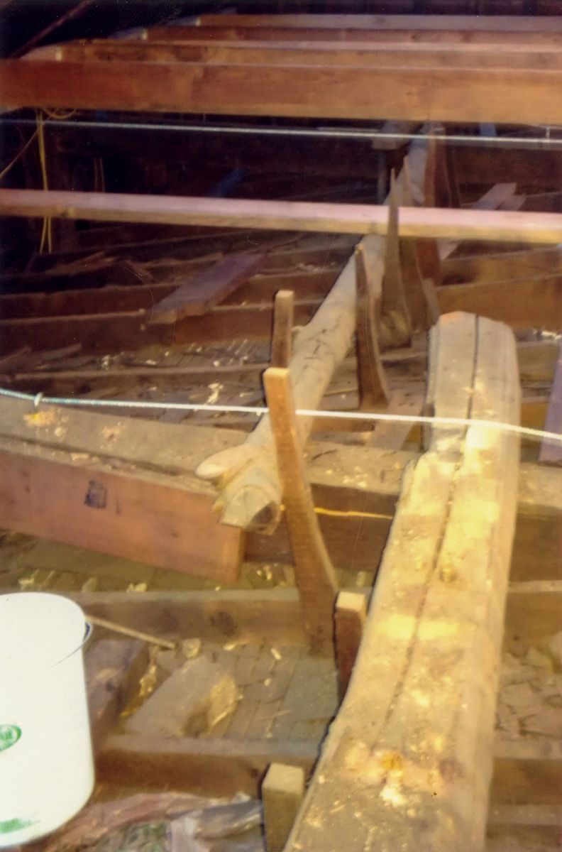 Images of repair work being done on the rafters of Dingletown Community Church.Collection