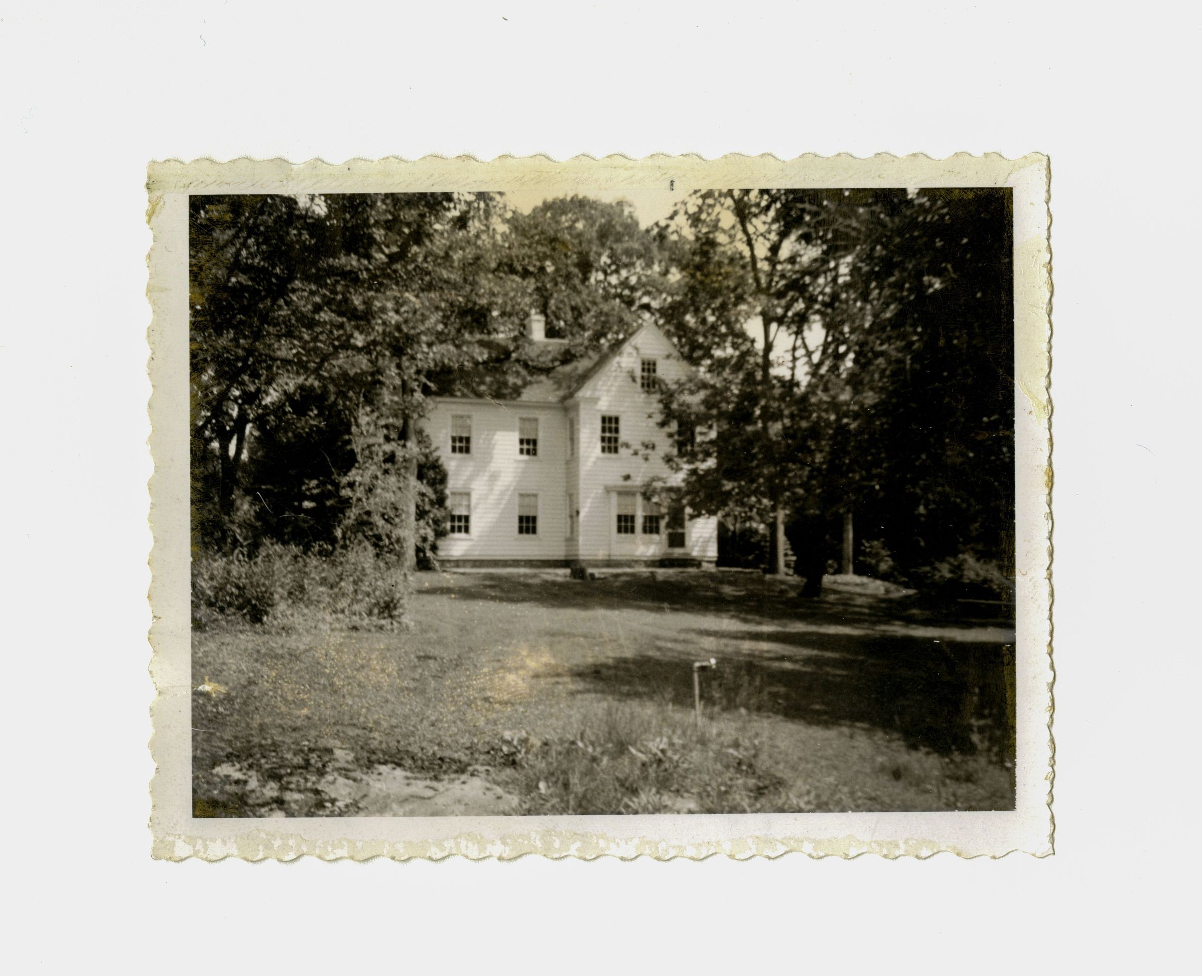 A three story clapboard house viewed from its lawn.
