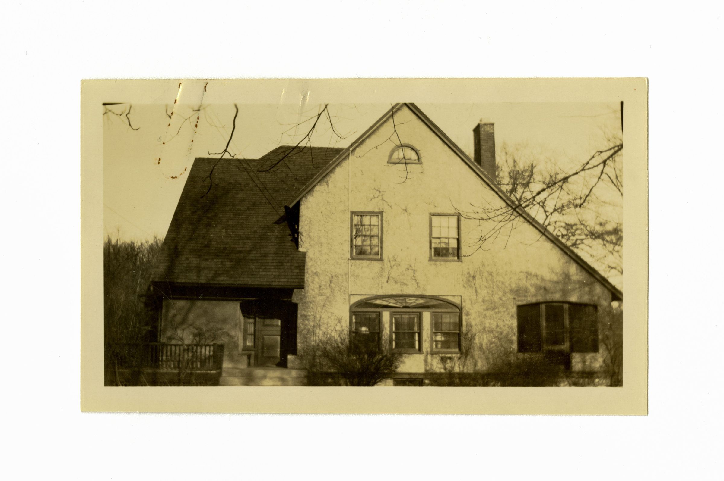 A side view of a home with a portion of the house has a saltbox style roofline.