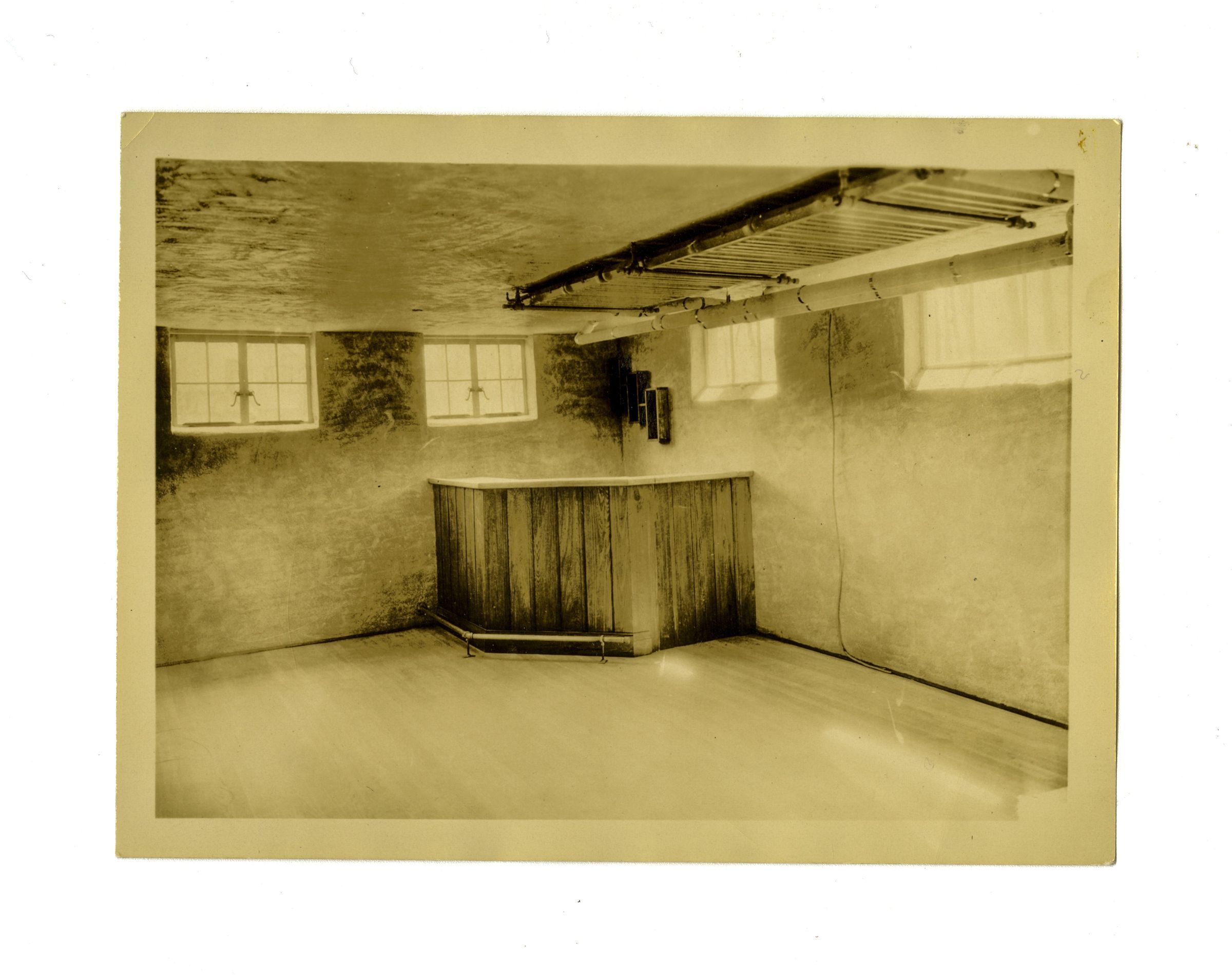 A room, possibly the basement of the house with what may be a bar in the corner.