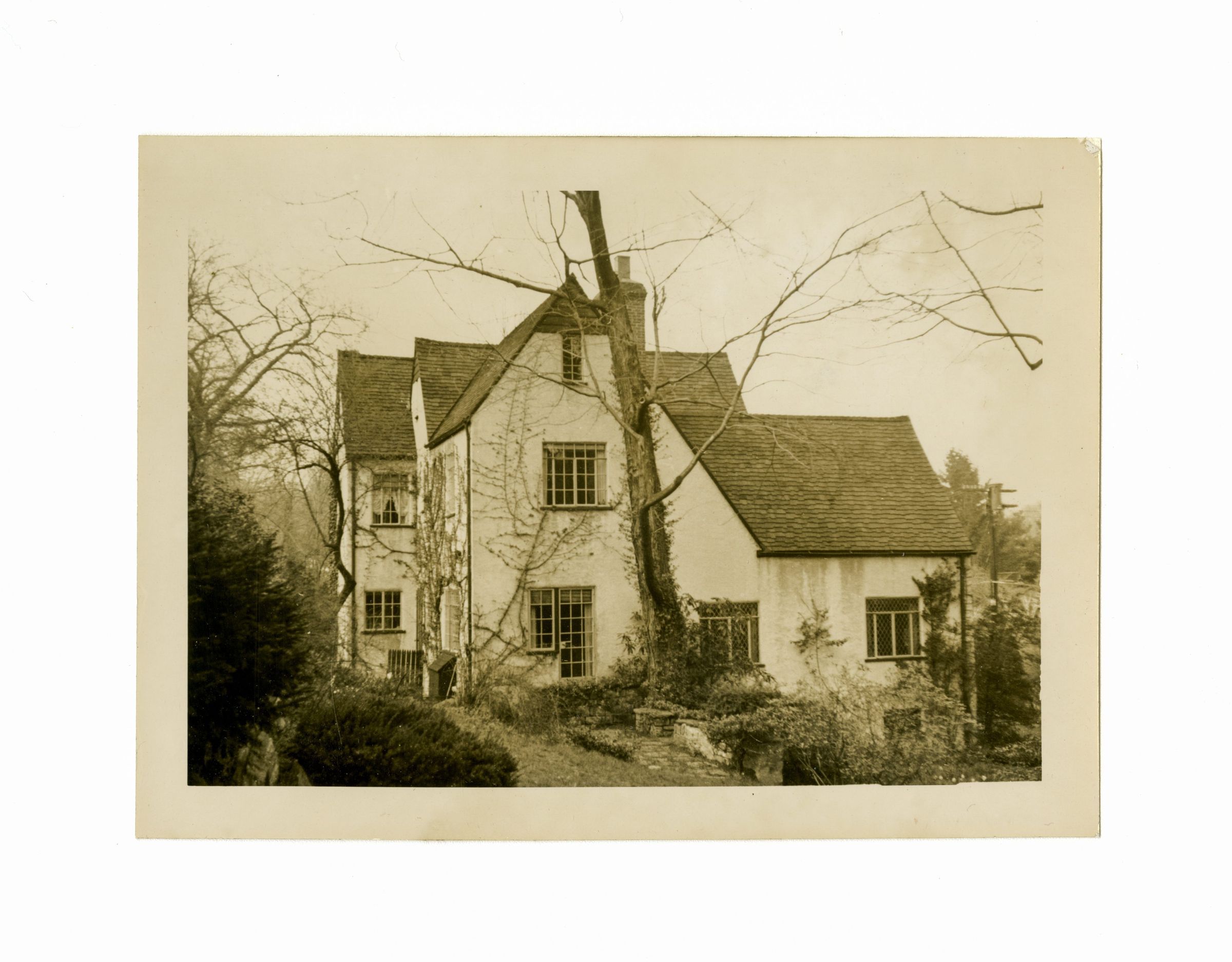 A view of the side of a three story house.
