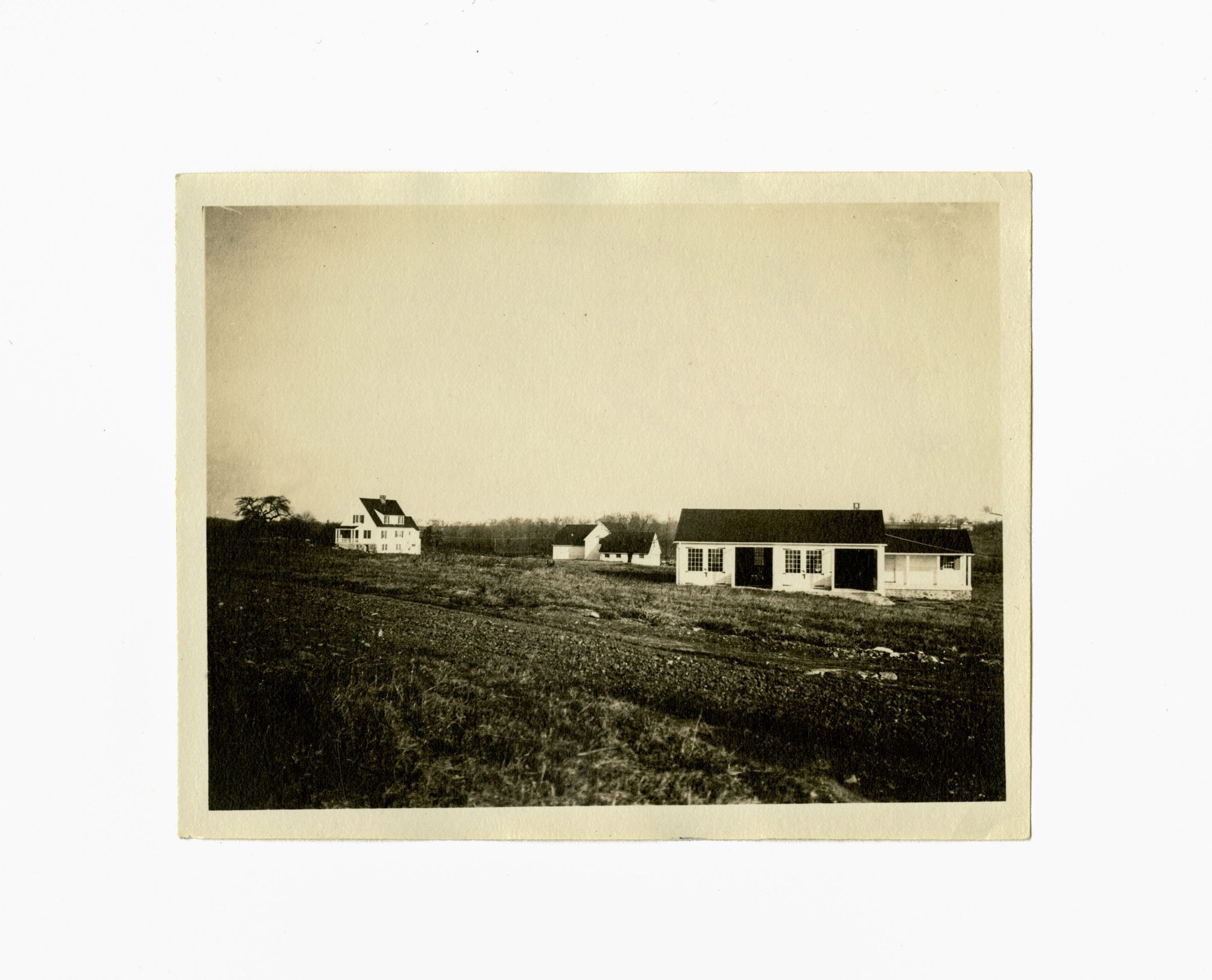 A view of three buildings on the estate. The building on the right of the image appears to be a garage.Collection