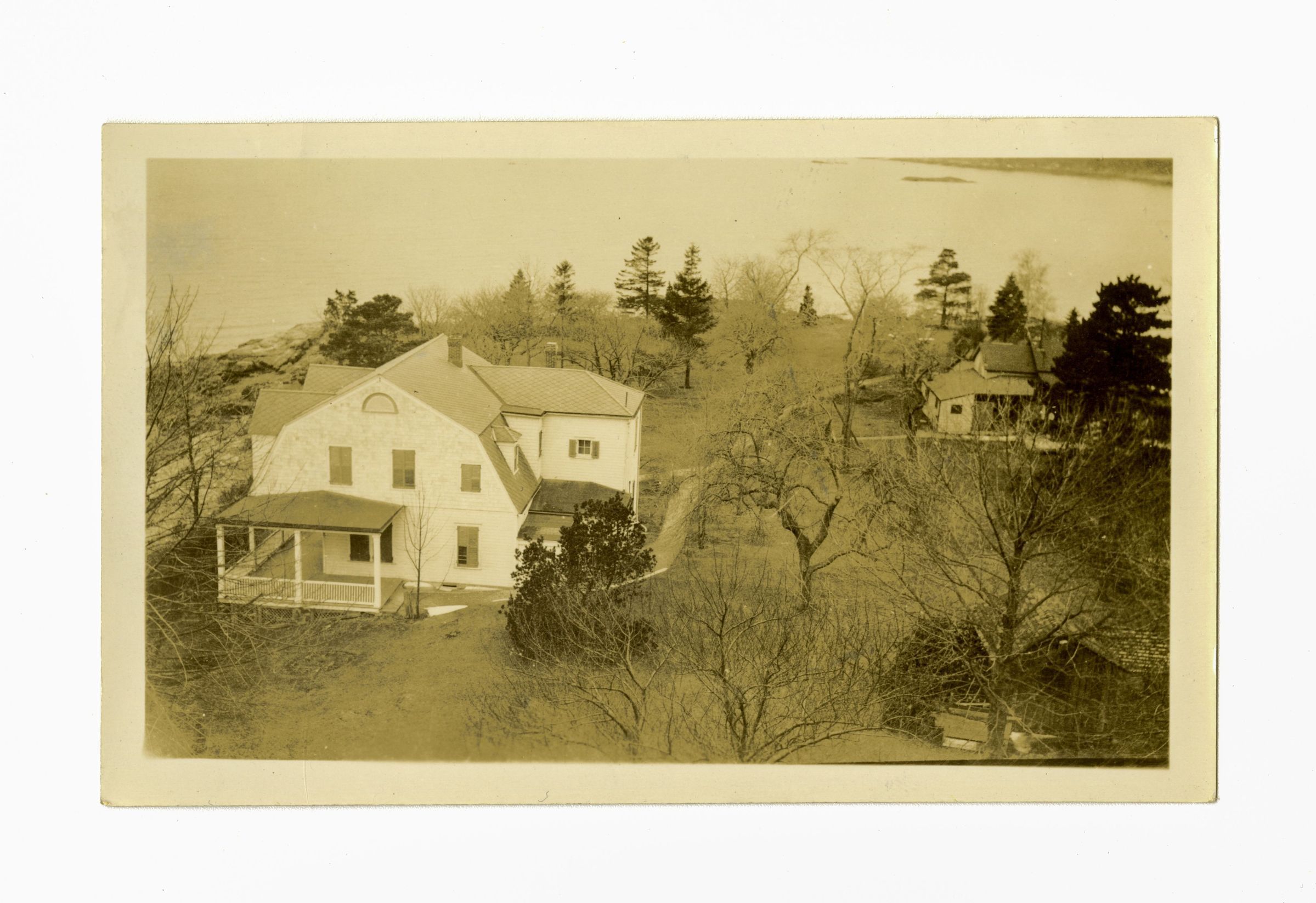 An aerial view of a three story shingle house and a large part of the rest of Shell Island.Collection