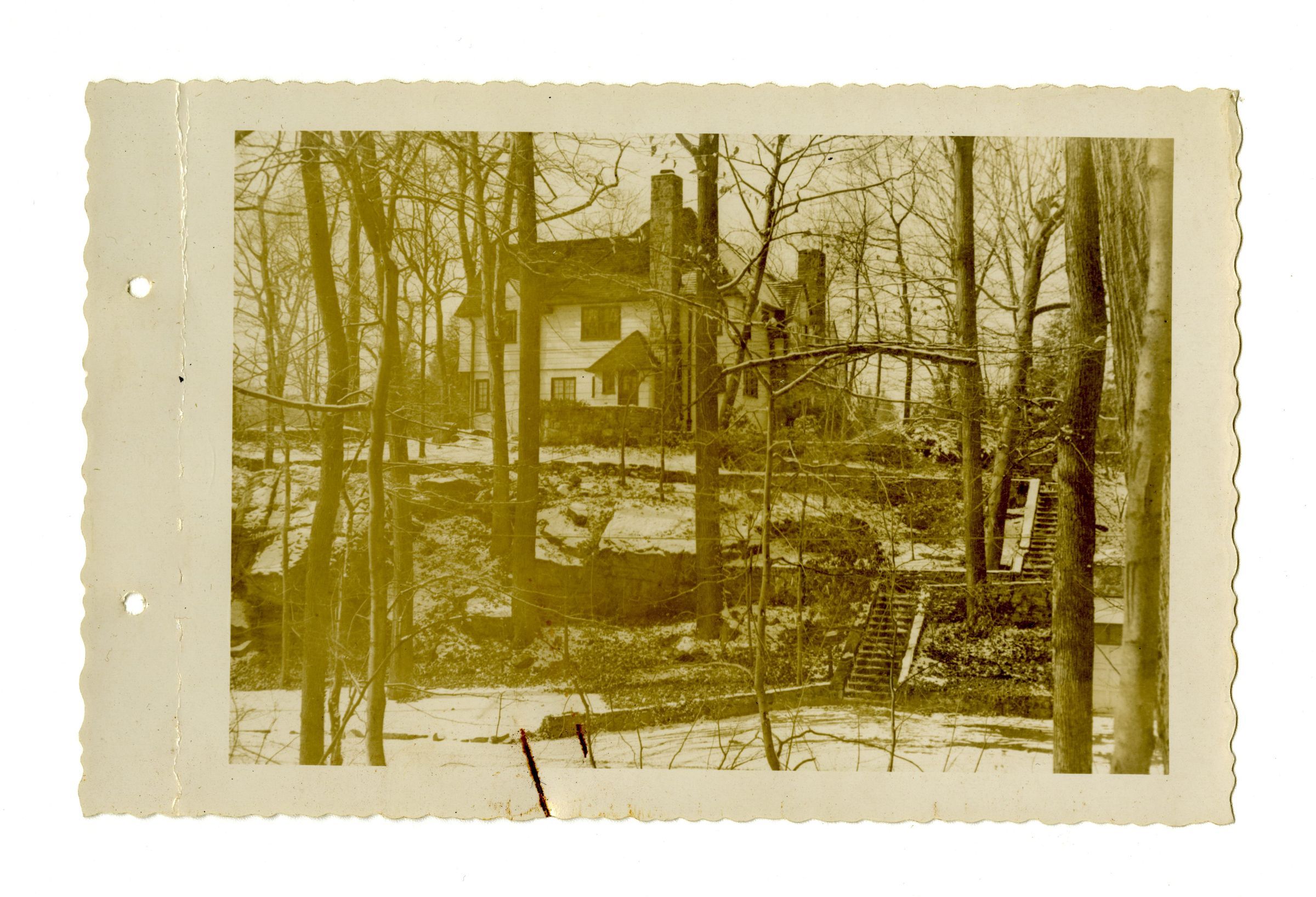 A house standing on a rocky hillside with steps leading down to another part of the grounds.