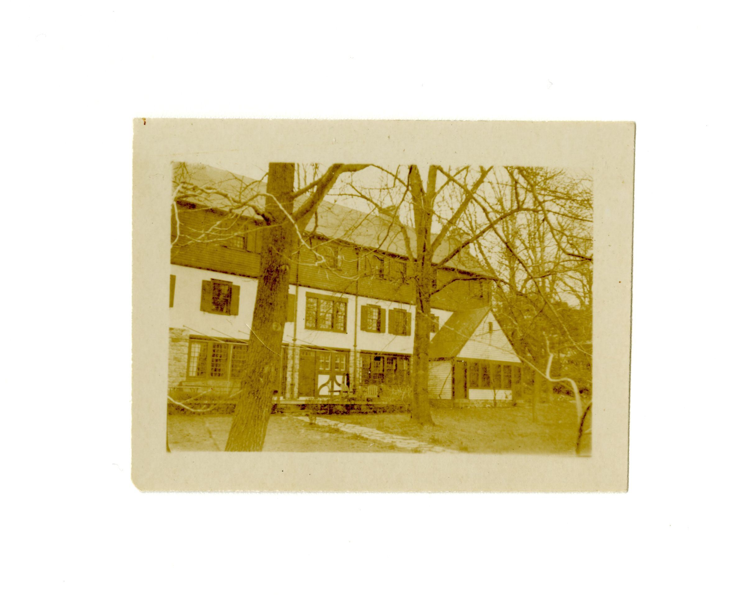 A three story house viewed from its back yard.