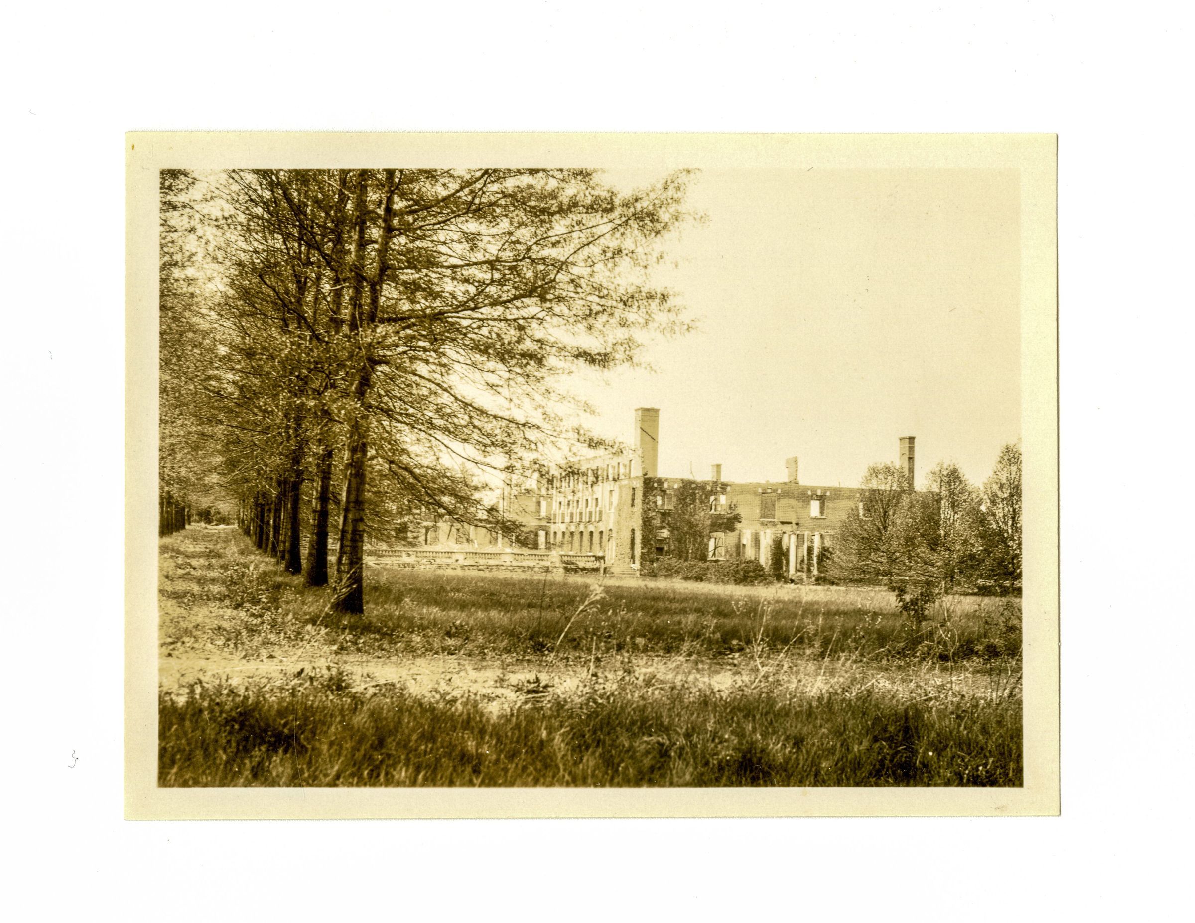 Exterior walls of partially demolished Ely School.