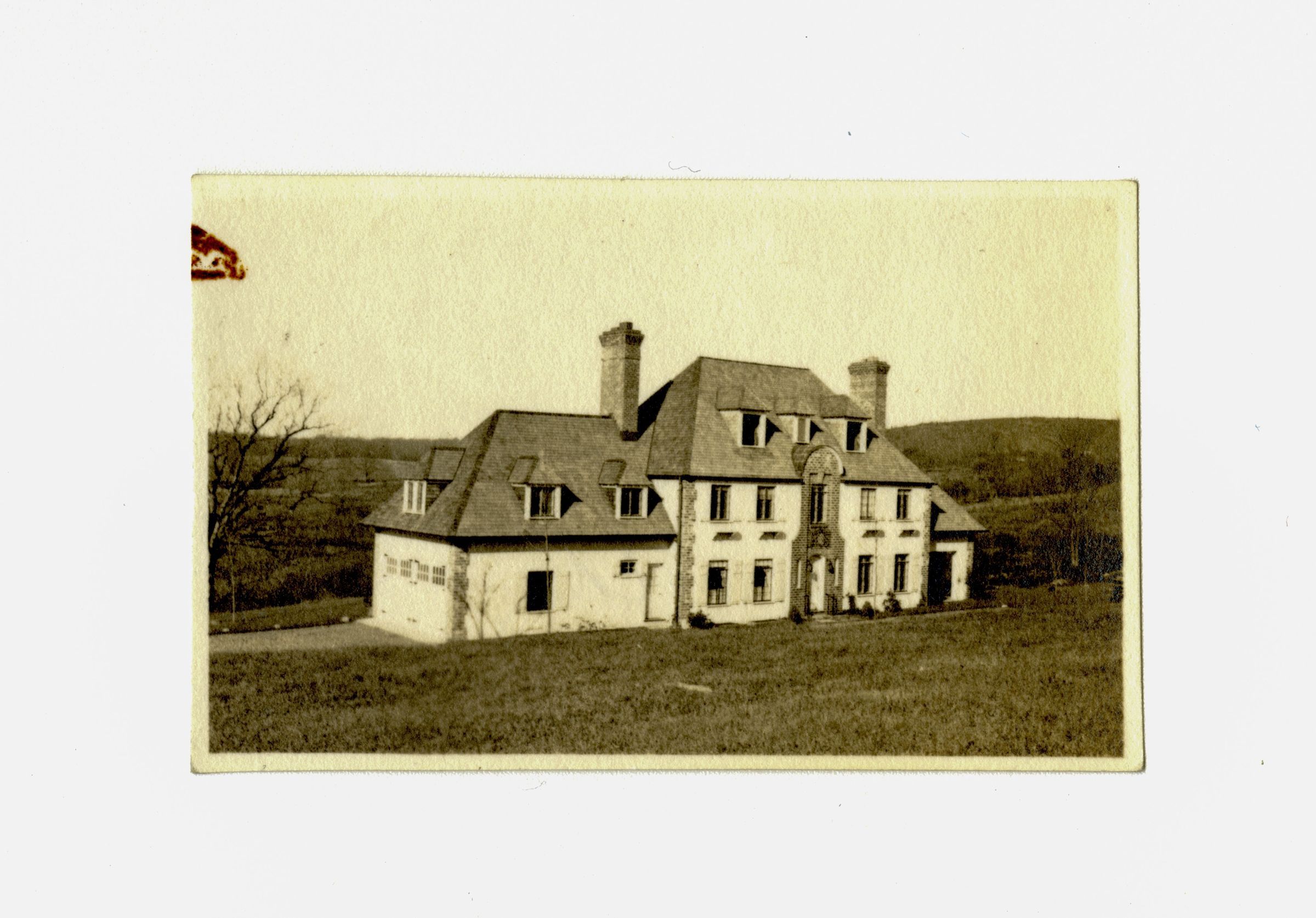 A three story house with a brick section around and above the main door. The house also has a two door garage.Collection