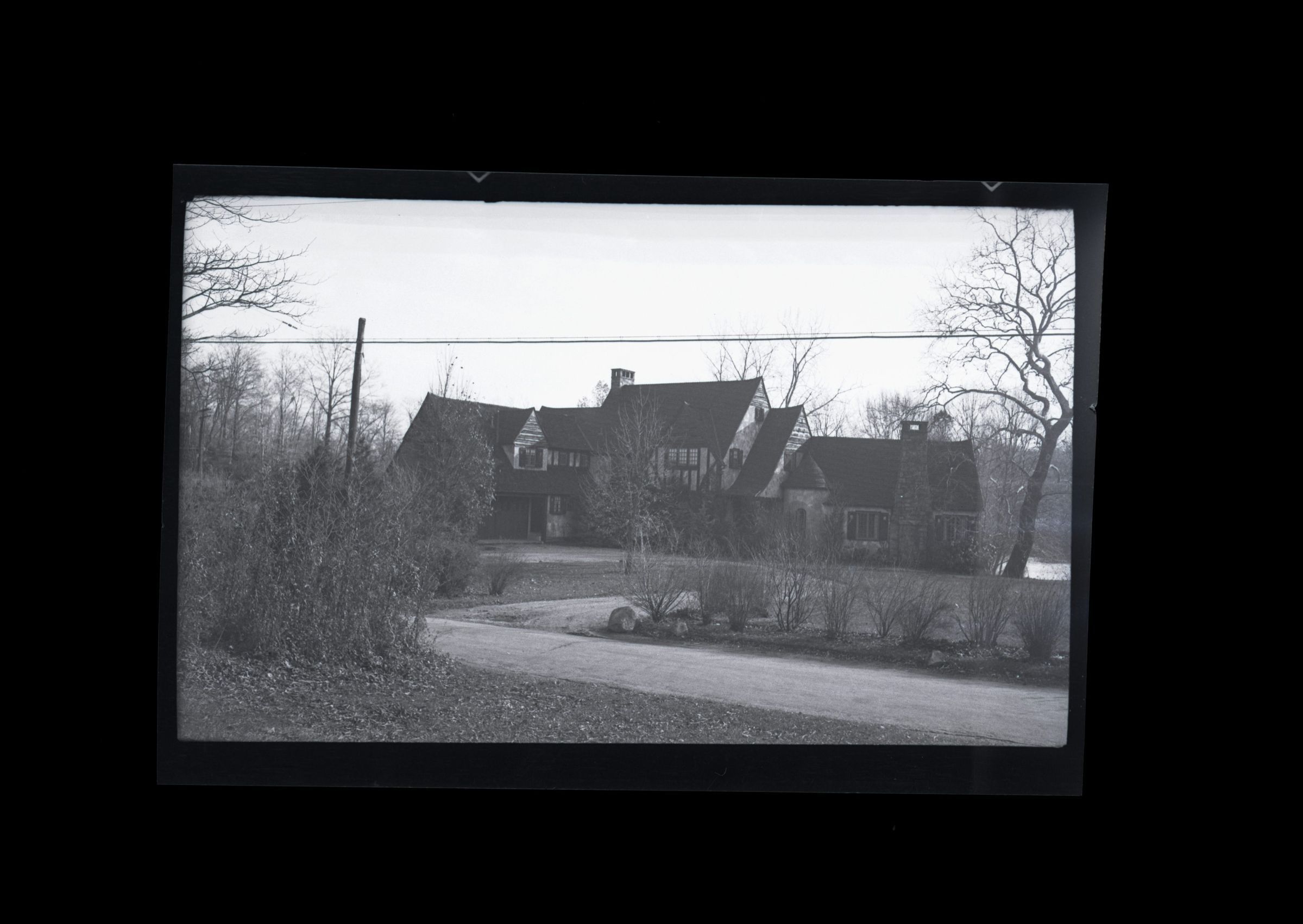 A three story house and its horseshoe-shaped driveway viewed from the street.
