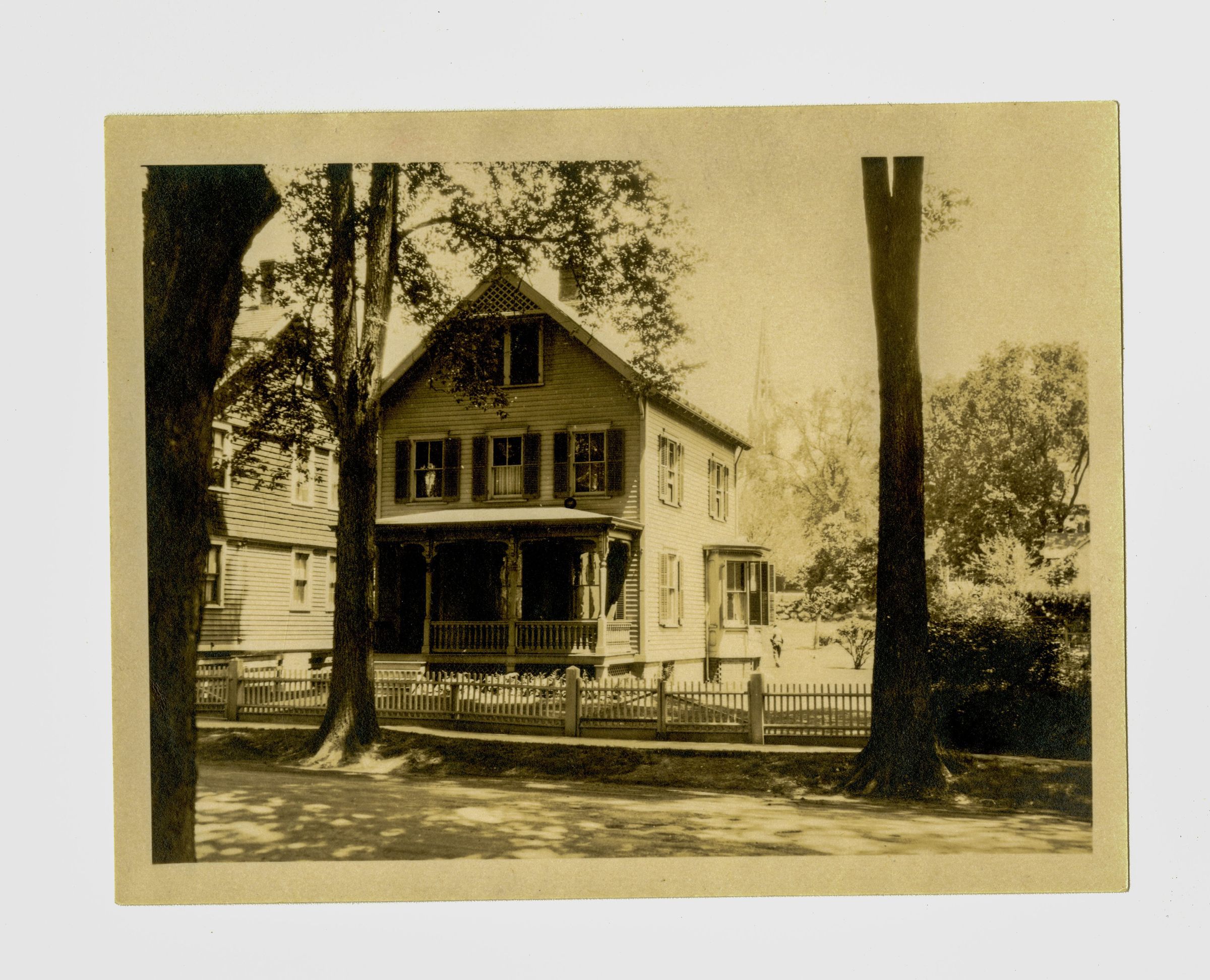 A three story house viewed from the street.
