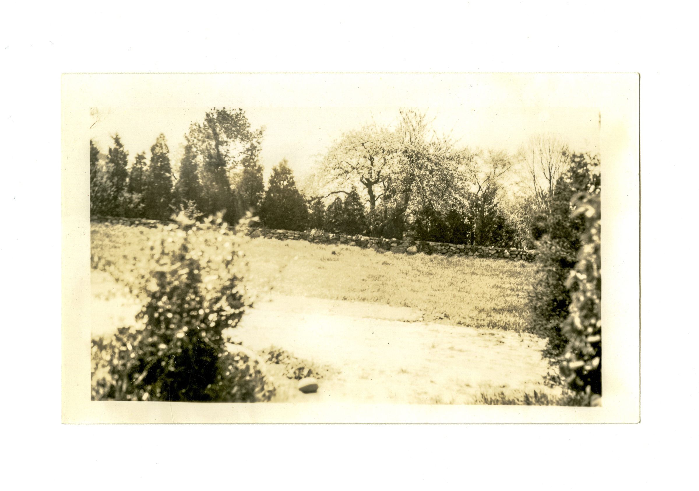 A view of a field and a flowering tree on the property.