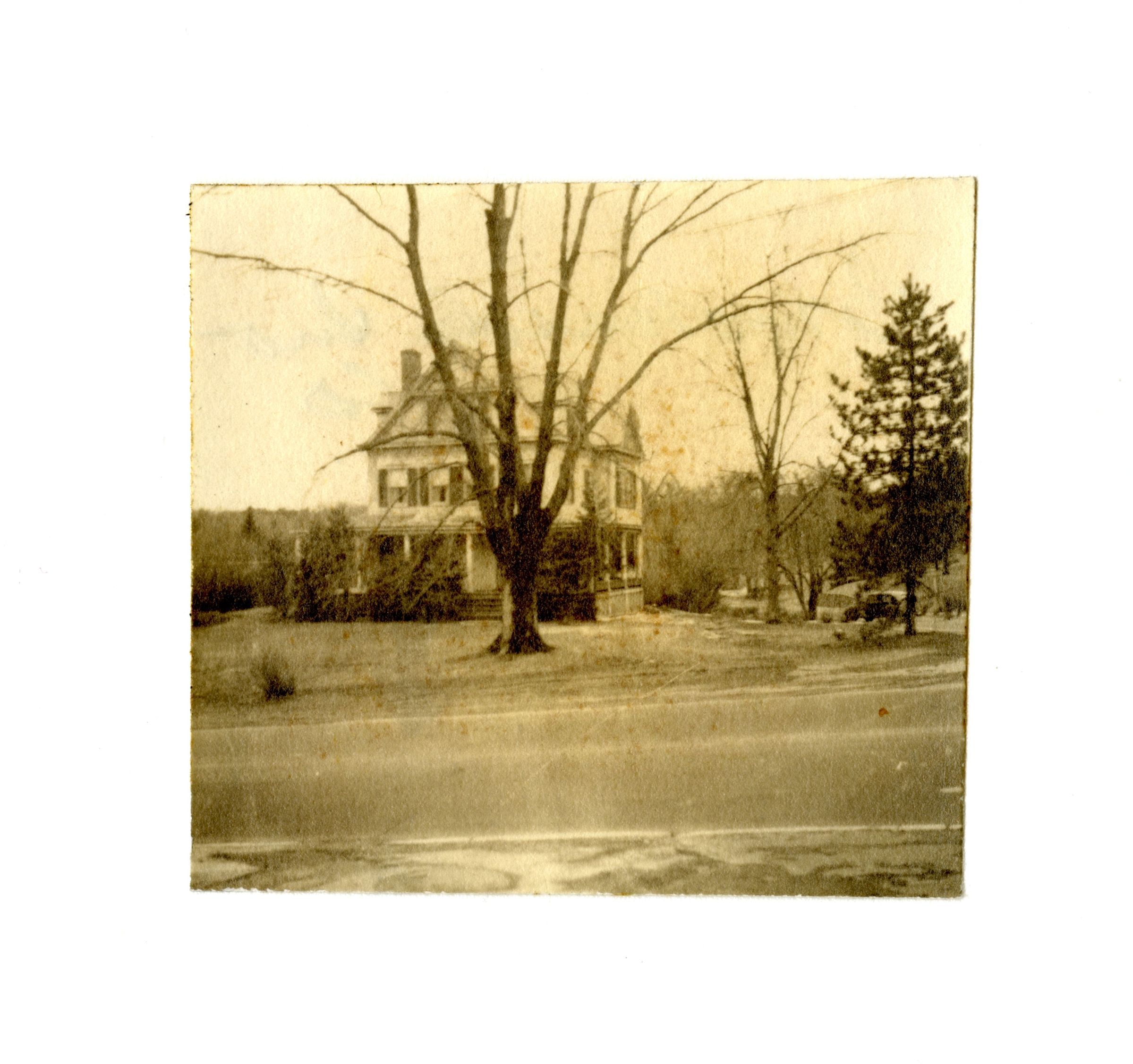 A three story house, partially obscured by a tree in its lawn, viewed from the street.Collection