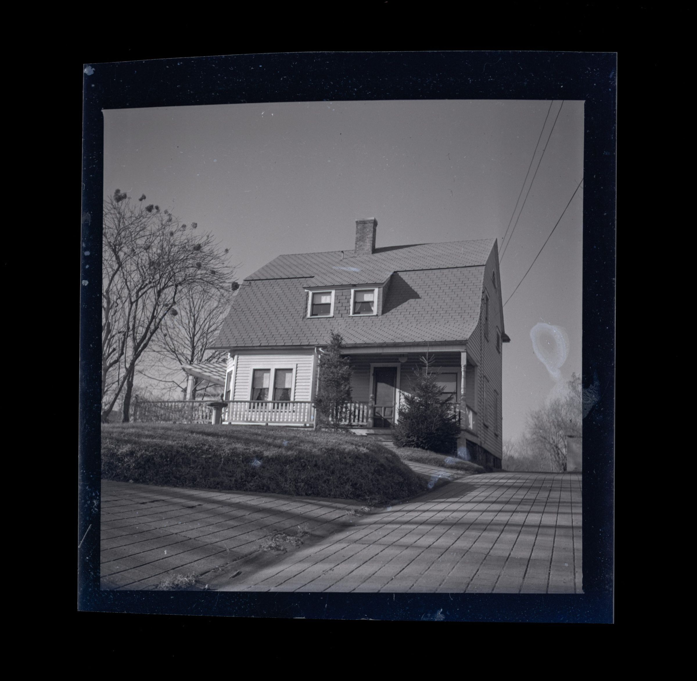 A three story house with a gambrel-style roof and a cobbled driveway.