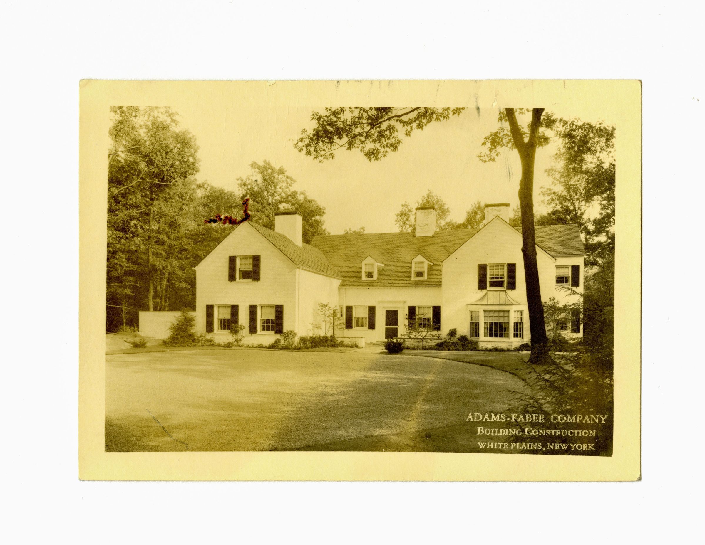 A two story house with a circular driveway/courtyard.