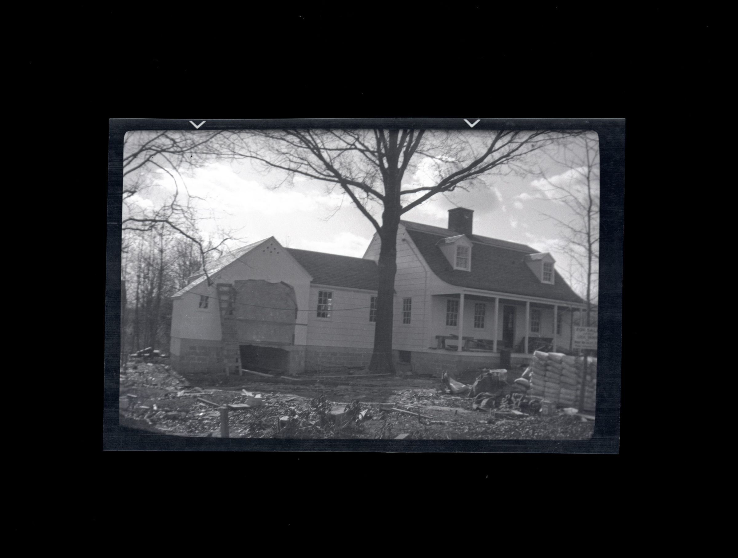 A Dutch Colonial house with a section of the house on the left of the image undergoing construction/repairCollection
