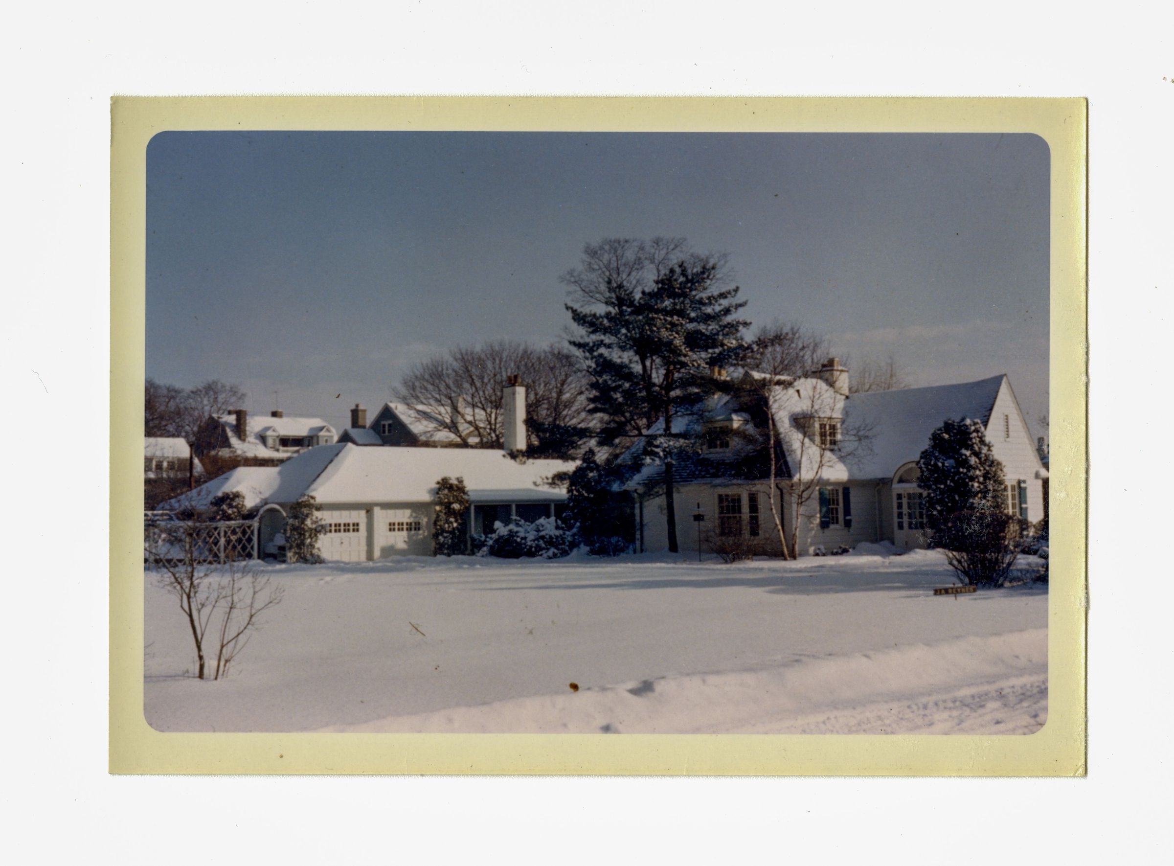 A two story house with a two door garage in the snow.