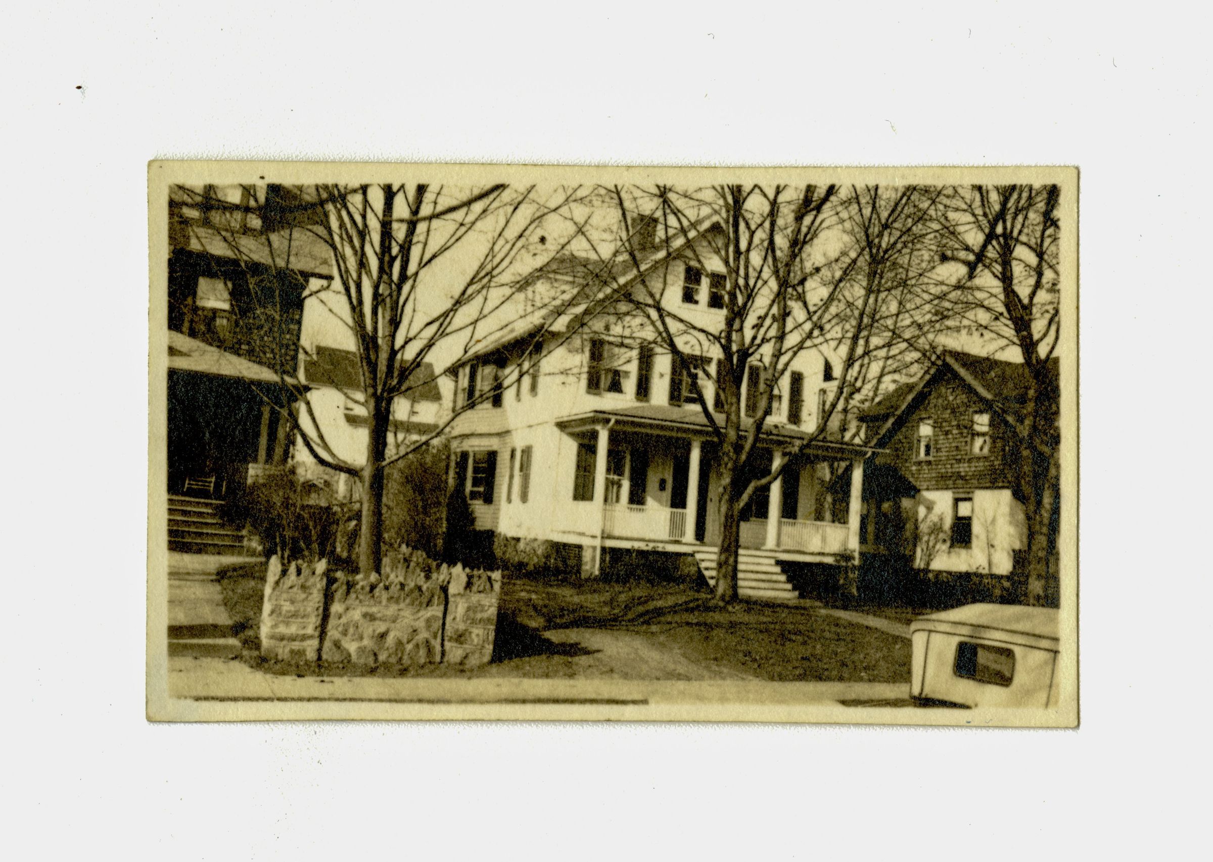 A three story home viewed from the street.