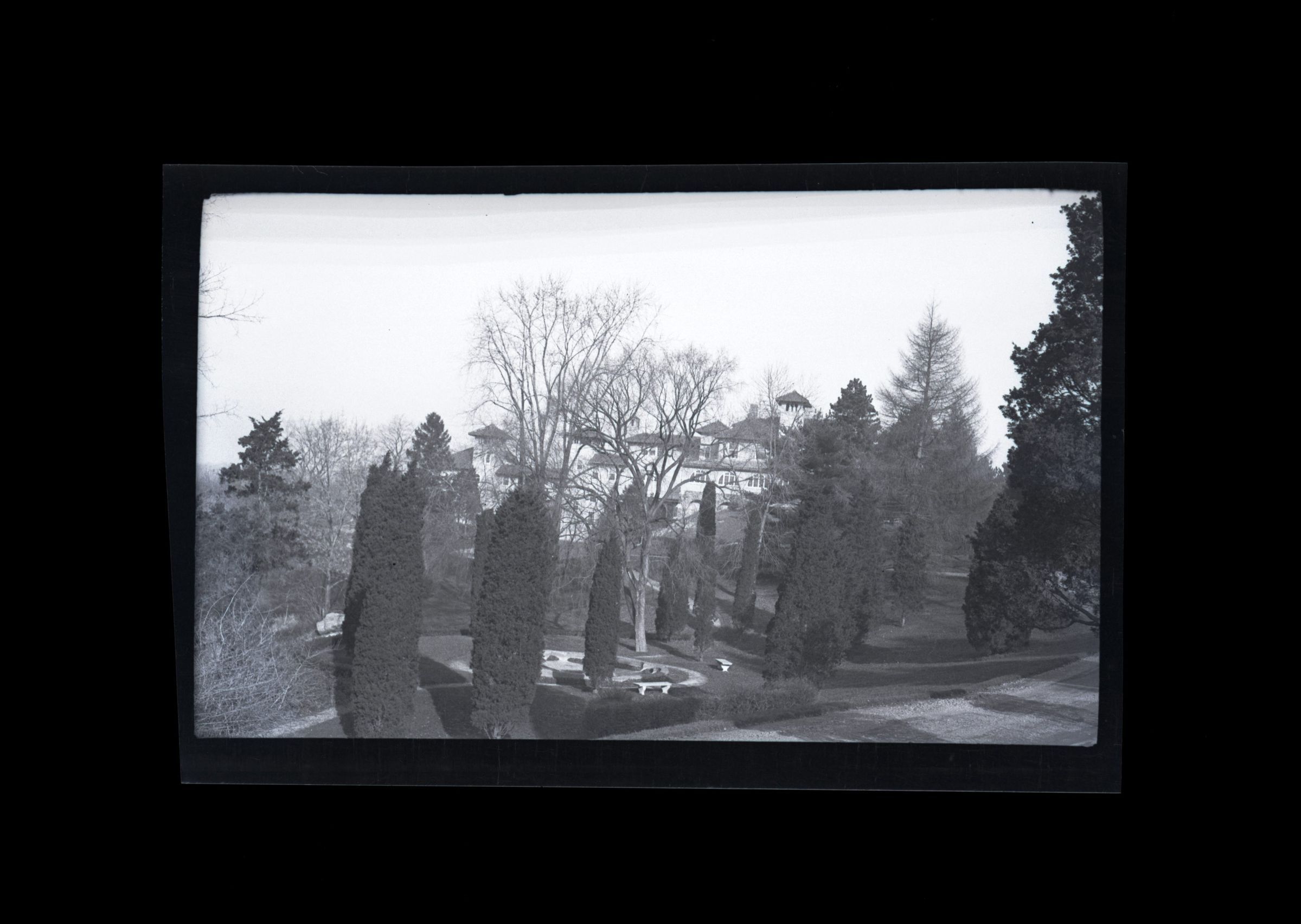 A view of the gardens of The Towers estate with the house visible in the background.Collection