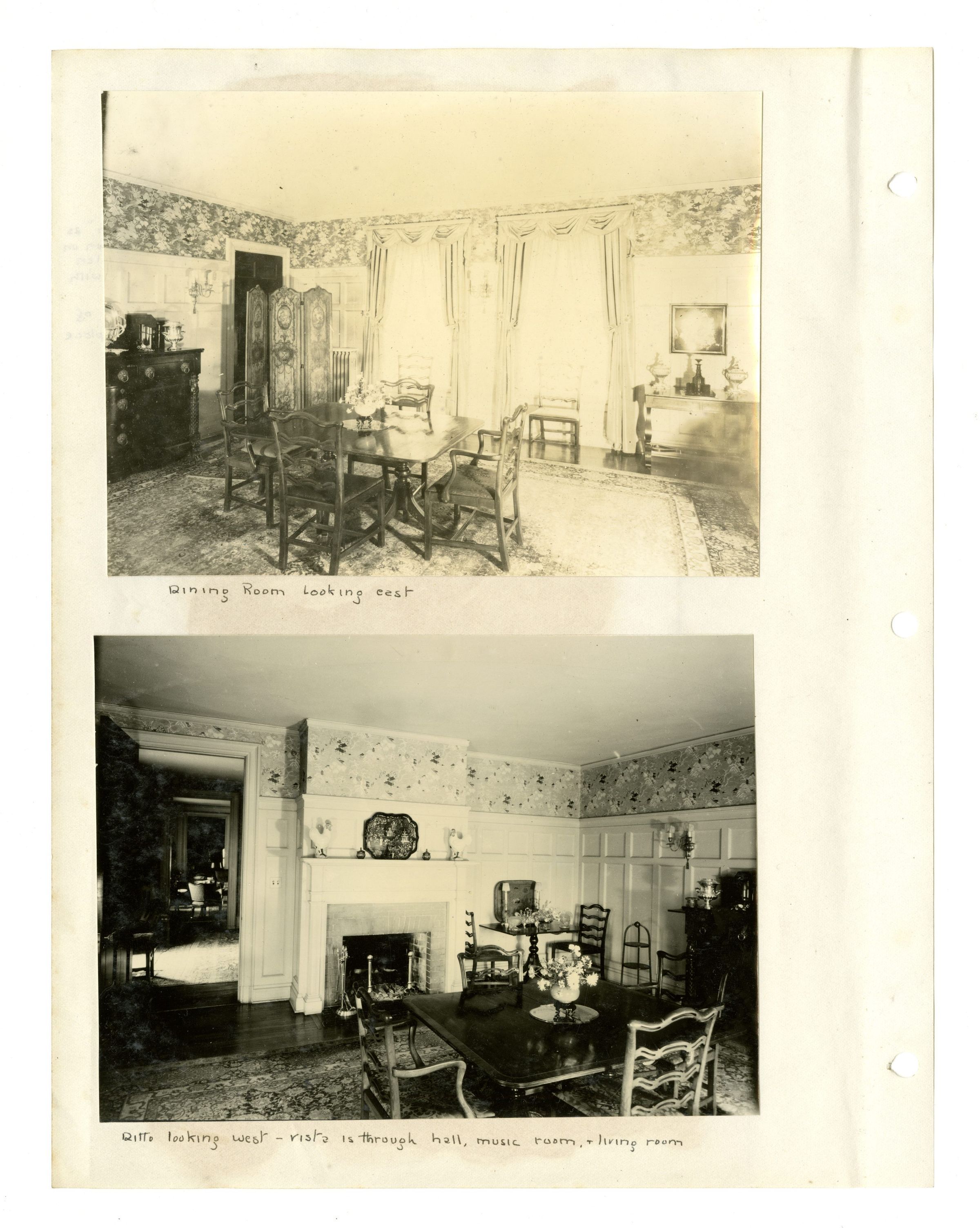Top photo is a view of the dining room looking east. Bottom photo is a view of the dining room looking west, into the rest of the house.Collection