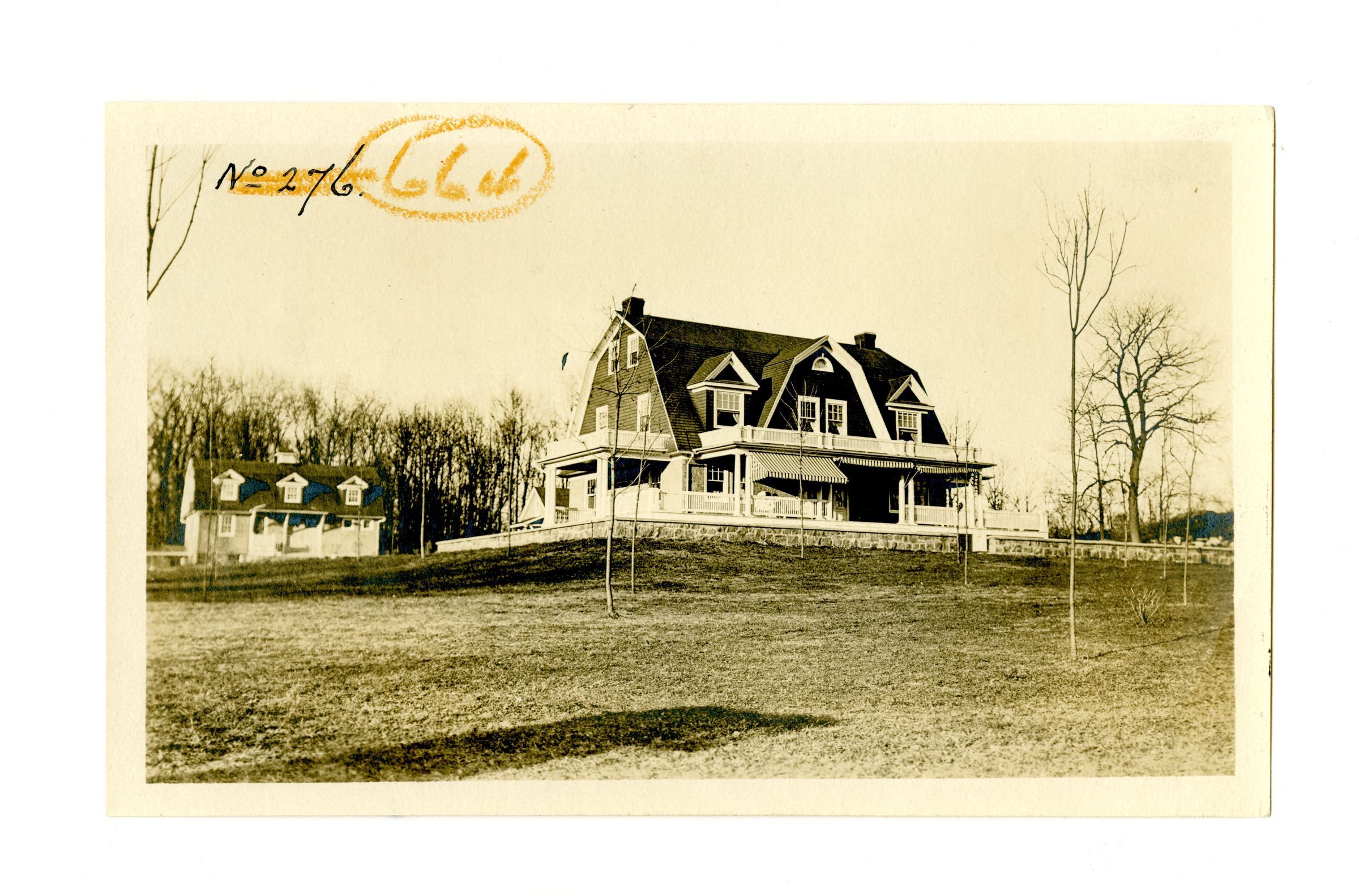 A three story house with a wraparound porch/terrace and a gambrel-style roof.Collection
