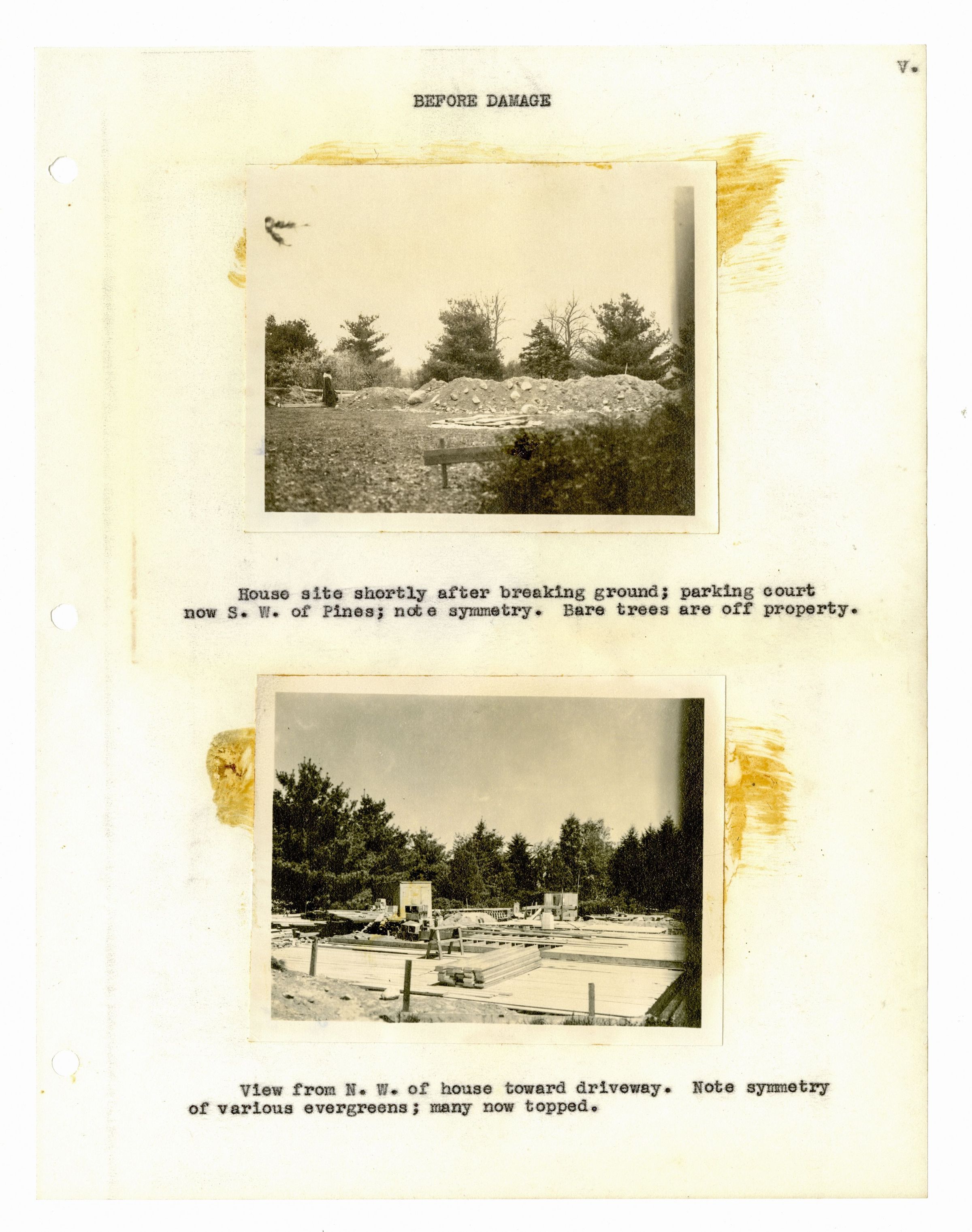 Top image show the site of the house shortly after breaking ground for its construction. Bottom image shows the house under construction.Collection