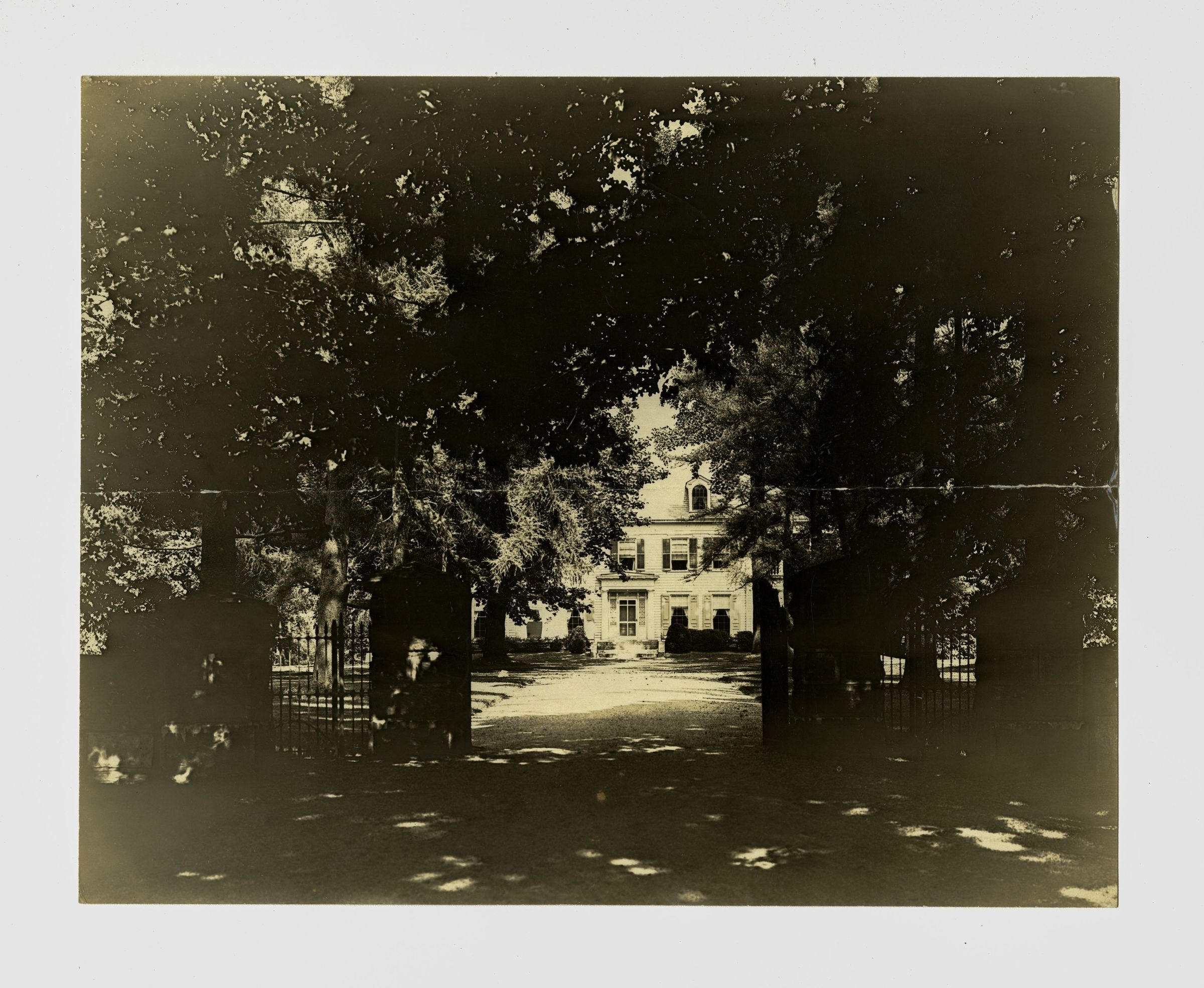 A view of the entrance gate and drive with a portion of the house visible in the background.