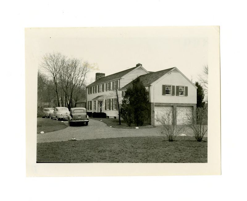 View of the front and side of the house showing the garage and cars lined up along the driveway.Collection