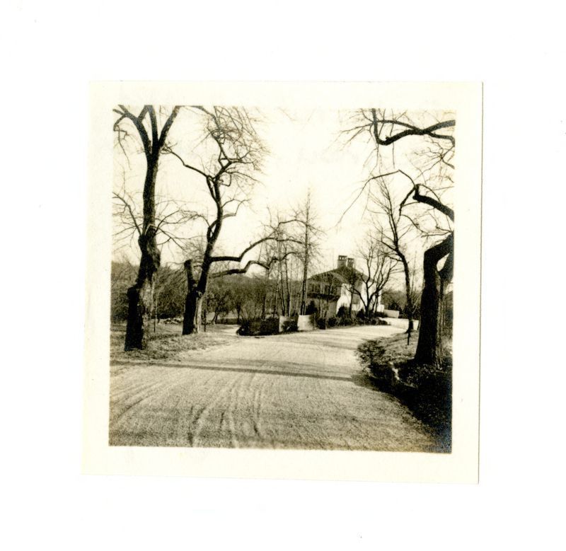 Distant view of the house from the driveway.