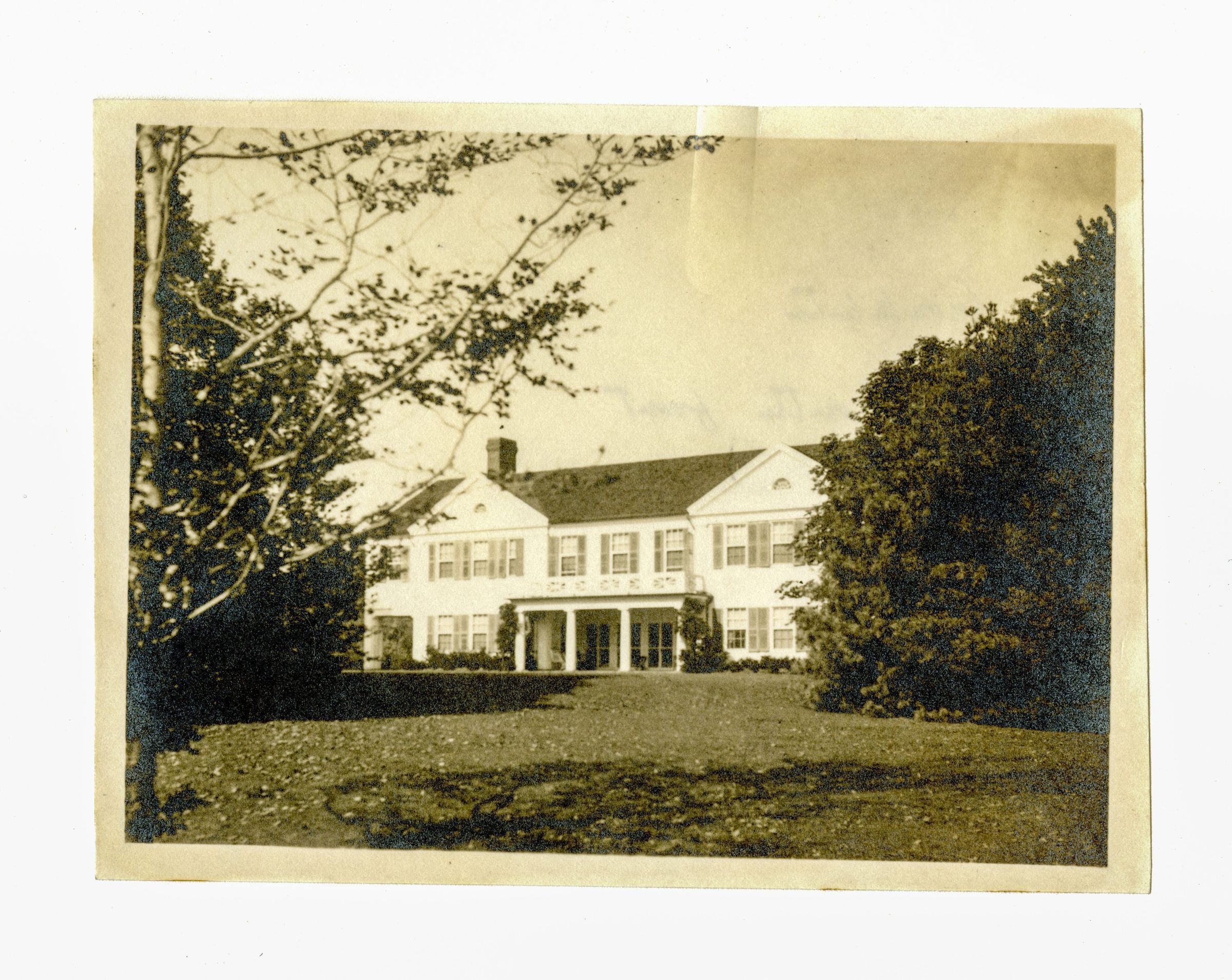 A Colonial-style home with a portion of the lawn visible.