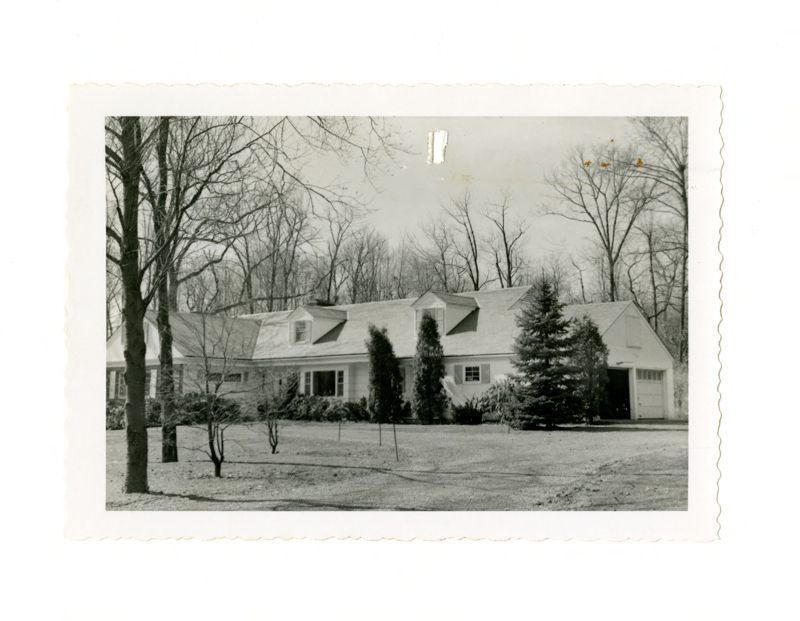 View of the front of the house from the driveway, showing the garage on the side of the house.