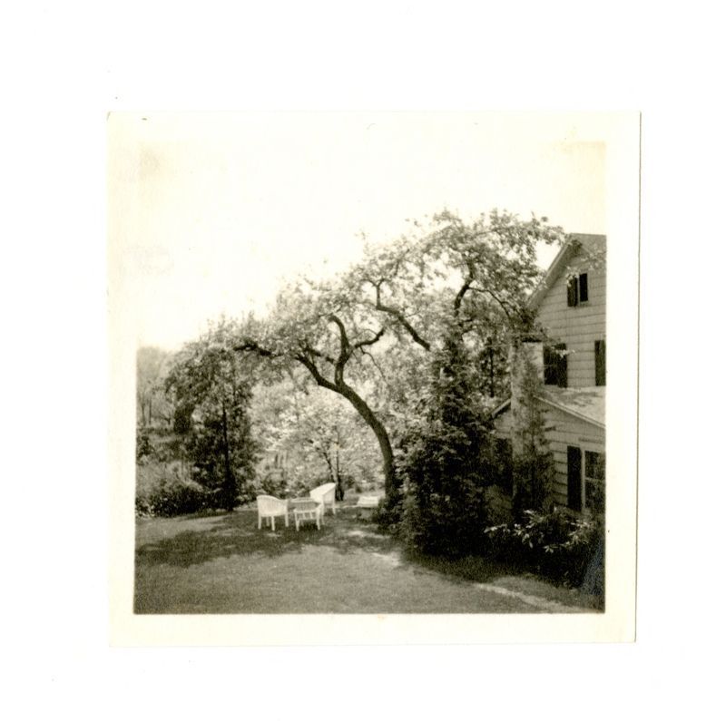 View of the side of the house with a patio.