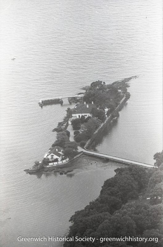 Aerial view of Nipowin Island off of Mead's Point in Greenwich