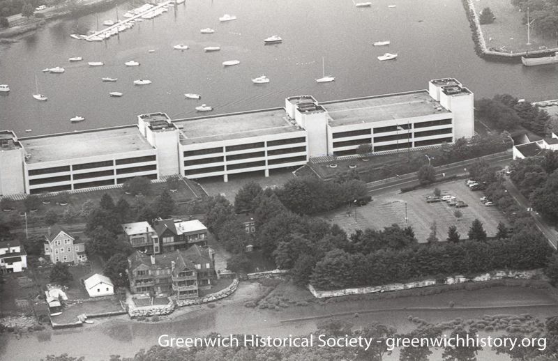 Aerial photograph of GenRe building on Steamboat Road ,overlooking Greenwich Harbor looking westCollection