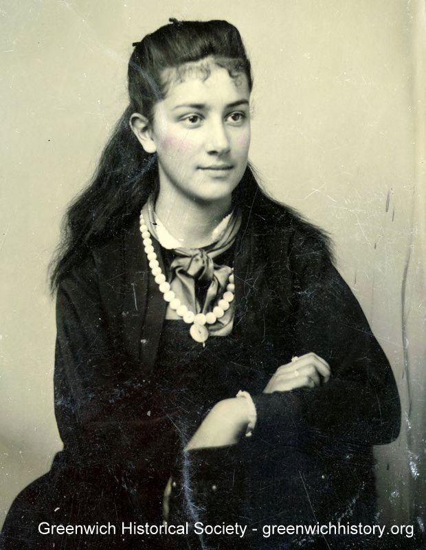 Portrait photograph of a young woman with long hair wearing a beaded necklace and scarf.Collection